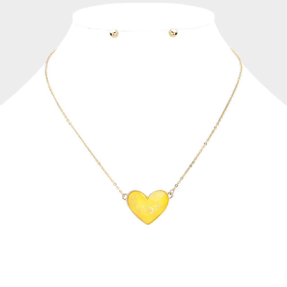 Gold Foil Detailed Heart Pendant Necklace