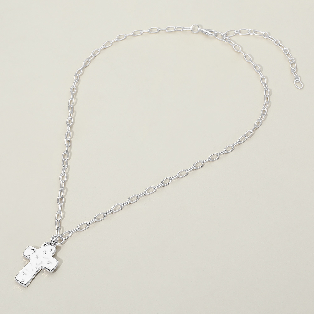 • Classic chain necklace featuring a textured cross pendant designed for everyday styling or meaningful gifting. The simple silhouette layers effortlessly with other necklaces or stands alone as a subtle statement, making it suitable for casual wear, work looks, or special occasions.