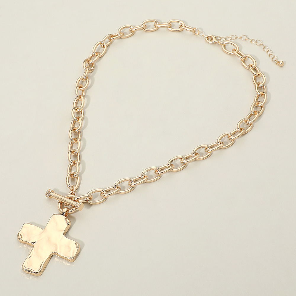 Hammered Metal Toggle Cross Charm Pendant Chunky Chain Necklace