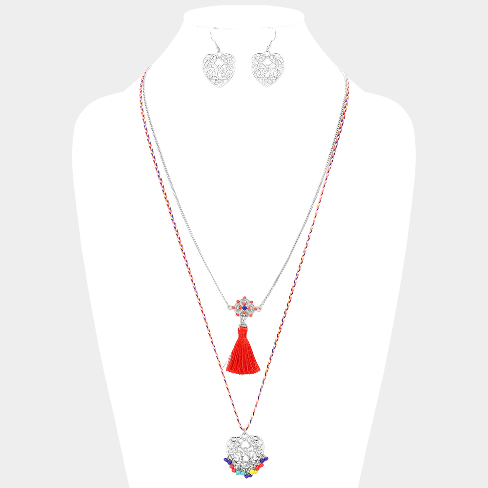 Filigree Metal Teardrop Layered Dropdown Dangle Earrings