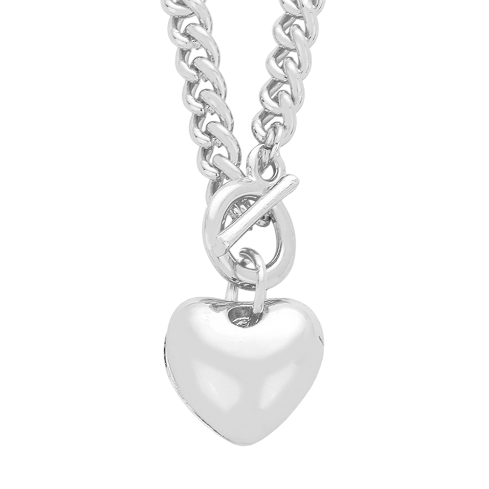 Heart Pendant Chunky Chain Toggle Necklace