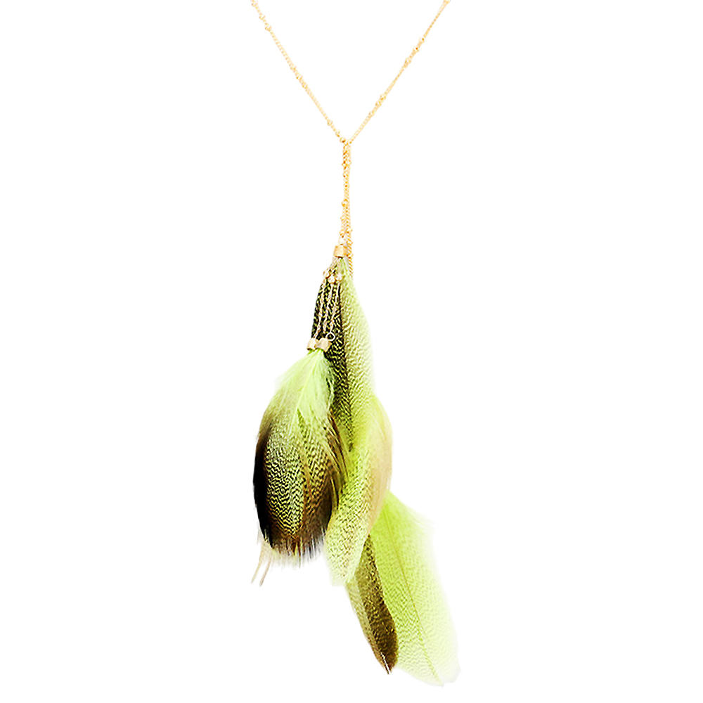 Natural Stone Rhinestone Metal Bar Feather Pendant Double Layered Necklace