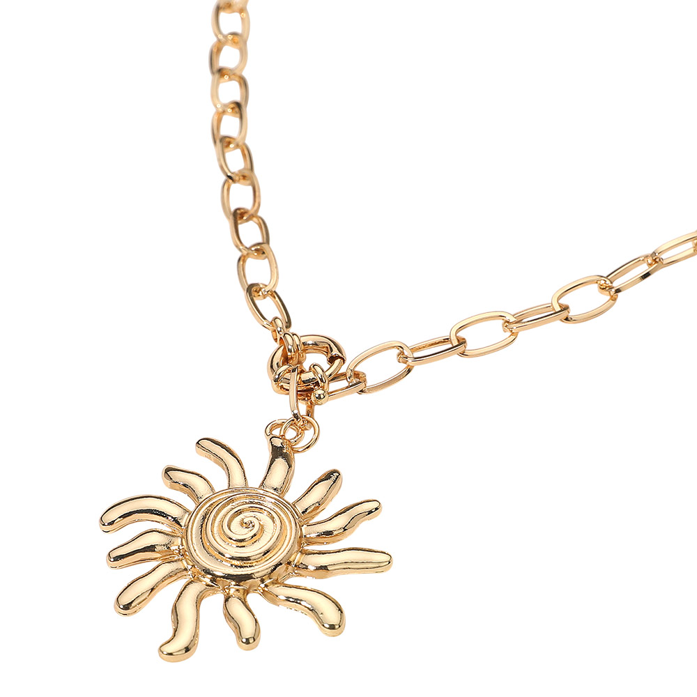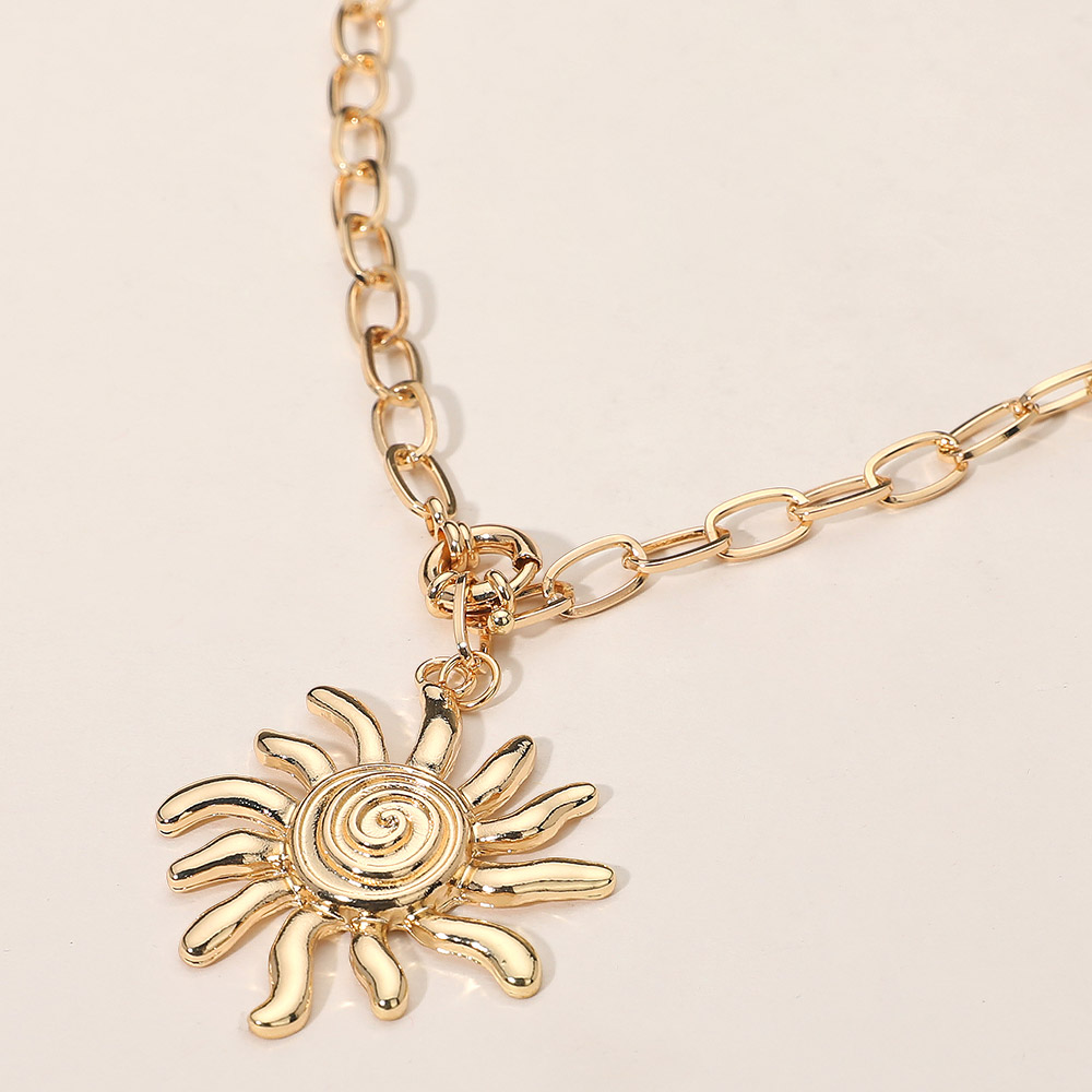 Metal Spiral Sun Pendant Paperclip Chain Necklace