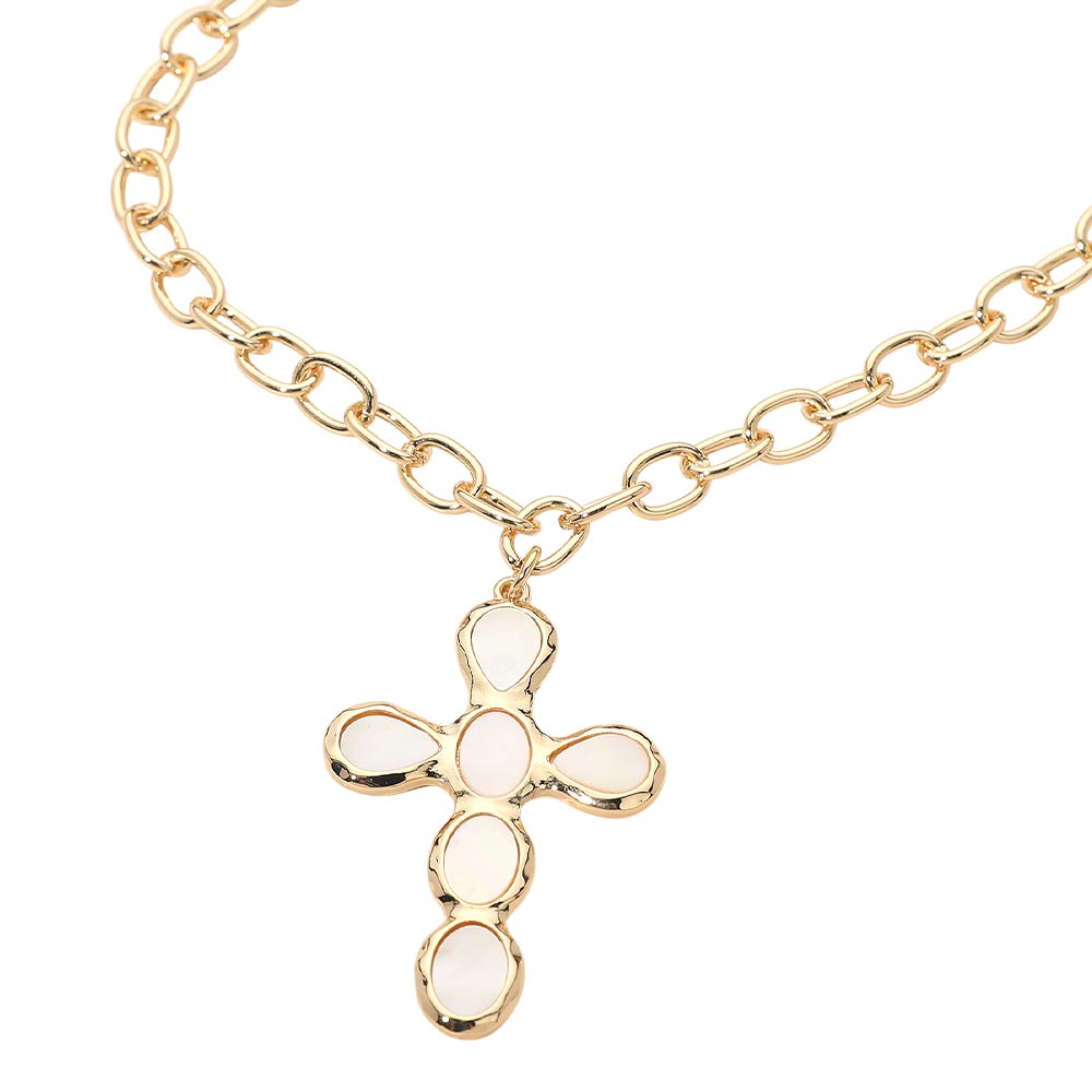 Details • Necklace Size : 17" + 3" L • Pendant Size : 1.25" X 2.1" • Elegant necklace featuring a bold link chain paired with a polished cross charm for a timeless statement. Designed to balance modern style with symbolic appeal, this necklace is easy to layer or wear alone. A versatile accessory for everyday outfits, gifting, or boutique collections seeking meaningful yet fashion-forward jewelry. • Lead and Nickel Compliant