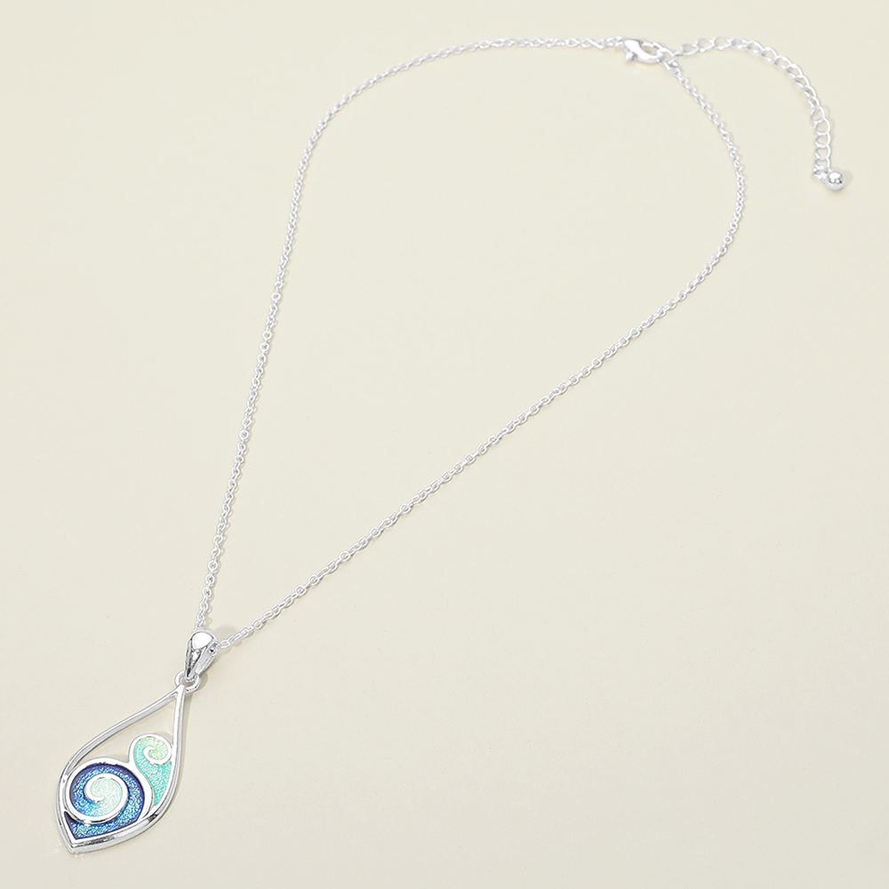 Details • Necklace Size : 18" + 3" • Pendant Size : 0.8" X 2" • Ocean wave swirl pendant necklace featuring a flowing, modern design that symbolizes movement and balance. A versatile jewelry piece ideal for everyday wear, gifting, or layering. Perfect for boutiques seeking elegant, nature-inspired statement necklaces with timeless appeal. • Lead and Nickel Compliant