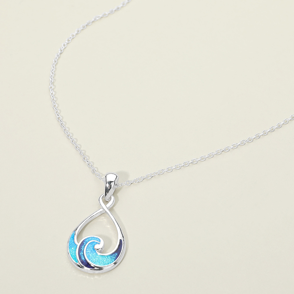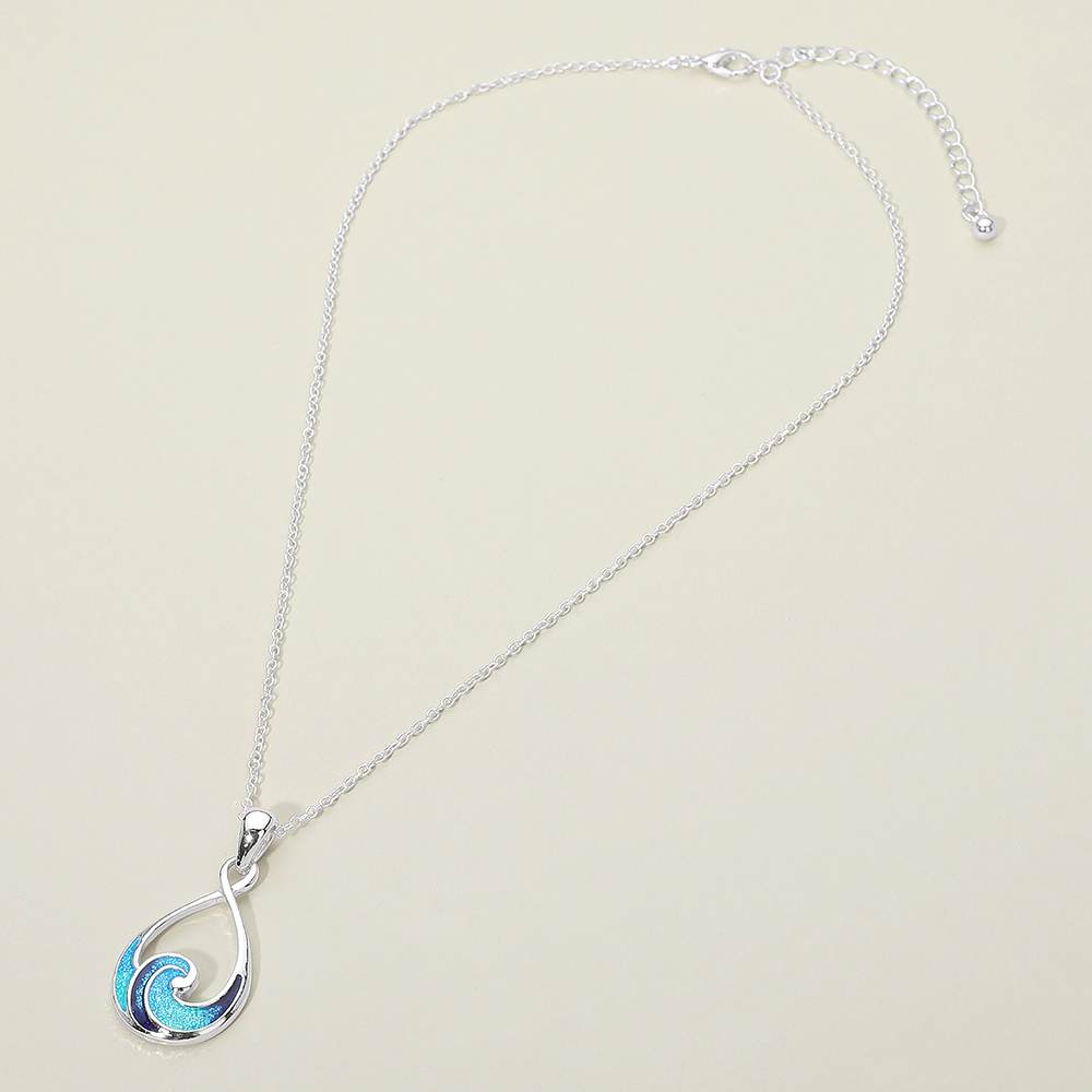 Details • Necklace Size : 18" + 3" L • Pendant Size : 0.8" X 1.6" • Ocean wave drop pendant necklace featuring a flowing swirl silhouette inspired by motion and balance. Designed to elevate everyday styling while remaining versatile for gifting or layering. A refined statement piece ideal for boutique jewelry collections and ocean-inspired fashion themes. • Lead and Nickel Compliant