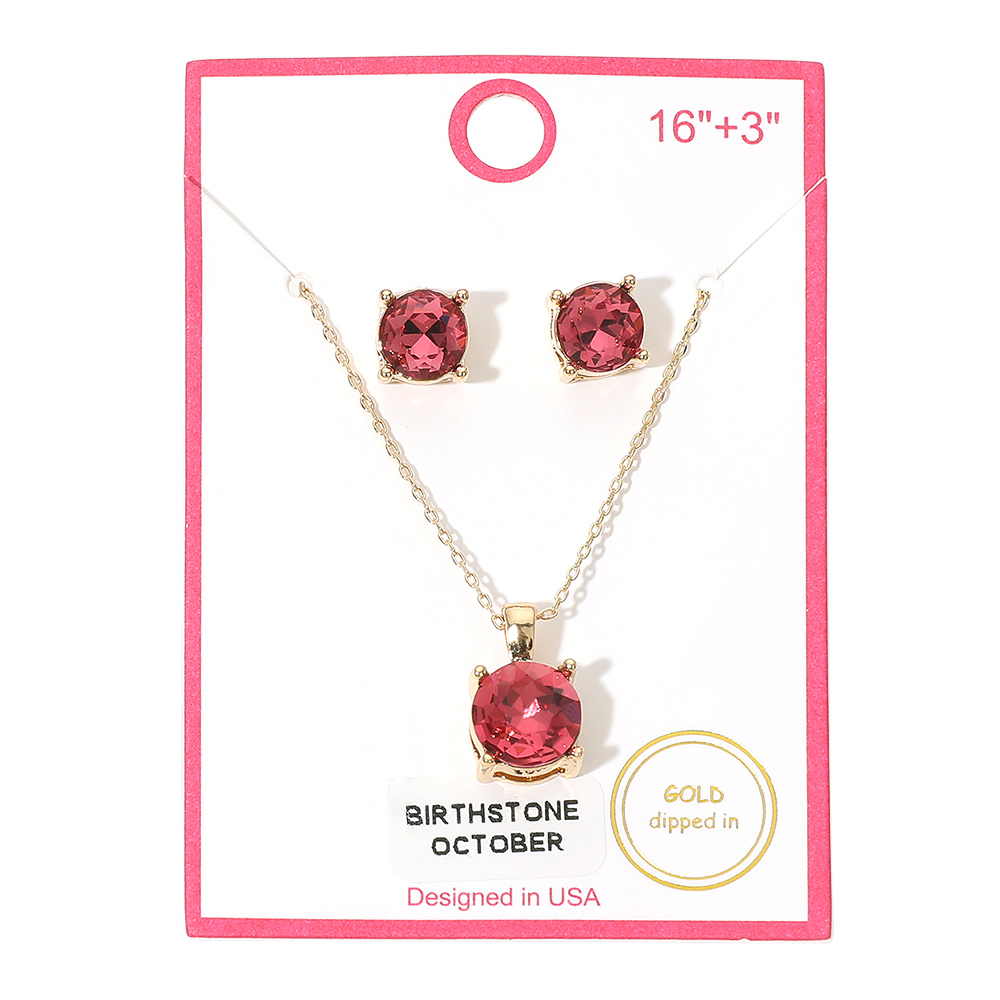 OCTOBER - Gold Dipped Birthstone Pendant Necklace