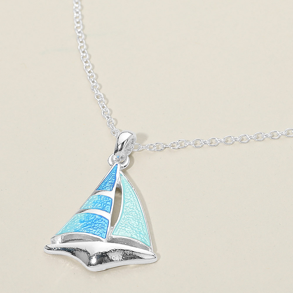 Details • Necklace Size : 16" + 3" L • Pendant Size : 0.9" X 1.5" • Made in Vietnam • Sailboat pendant necklace inspired by ocean adventures and coastal living. This charming design features a classic sailboat shape that adds a relaxed yet stylish touch to everyday looks. Perfect for beach boutiques, nautical themed gift shops, resort stores, and travel collections, appealing to customers who love sailing, seaside escapes, and ocean inspired jewelry. • Lead and Nickel Compliant