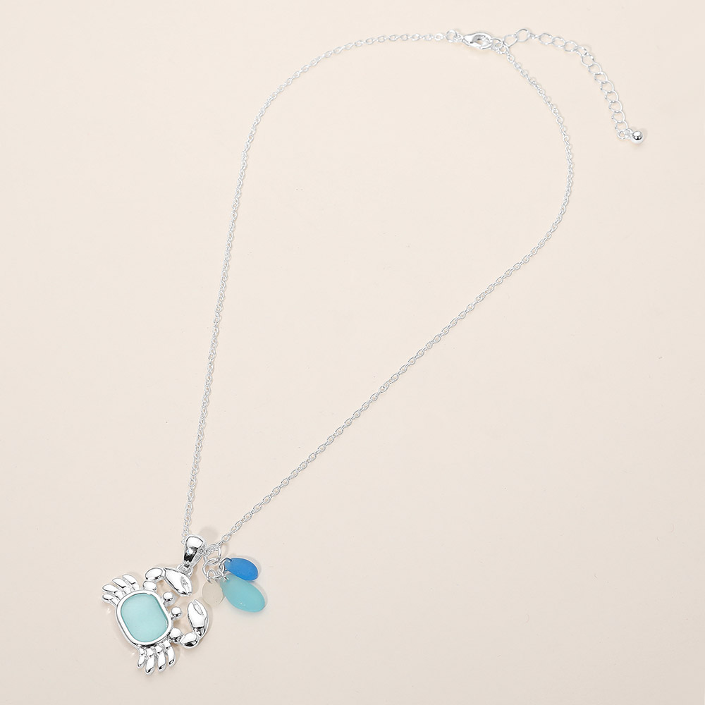 Details • Necklace Size : 18" + 3" L • Pendant Size : 1.2" X 1.6" • Whimsical crab charm pendant necklace inspired by ocean life and playful coastal style. Features a detailed crab silhouette with soft accent dangles that add movement and visual interest. A fun and easy-to-wear accessory ideal for beach boutiques, resort shops, gift stores, and seasonal collections, offering a charming way to bring seaside personality to everyday outfits. • Lead and Nickel Compliant