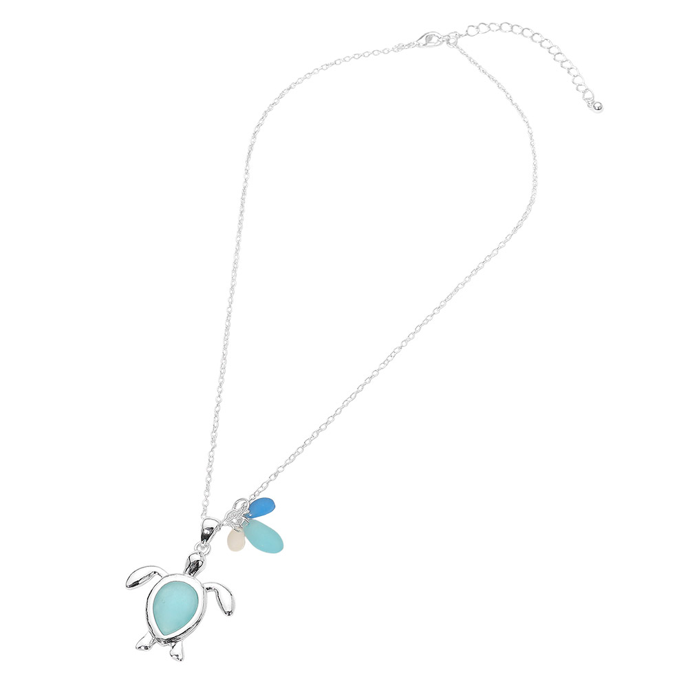 Details • Necklace Size : 18" + 3" L • Pendant Size : 1.25" X 1.75" • Whimsical sea turtle charm necklace designed to add playful coastal style to everyday looks. Features a detailed turtle pendant with dangling accent charms for added movement and interest. Ideal for beach shops, resort boutiques, and gift-focused displays, this necklace pairs easily with casual outfits and seasonal collections, making it a versatile, eye-catching accessory for customers seeking ocean-inspired jewelry. • Lead and Nickel Compliant