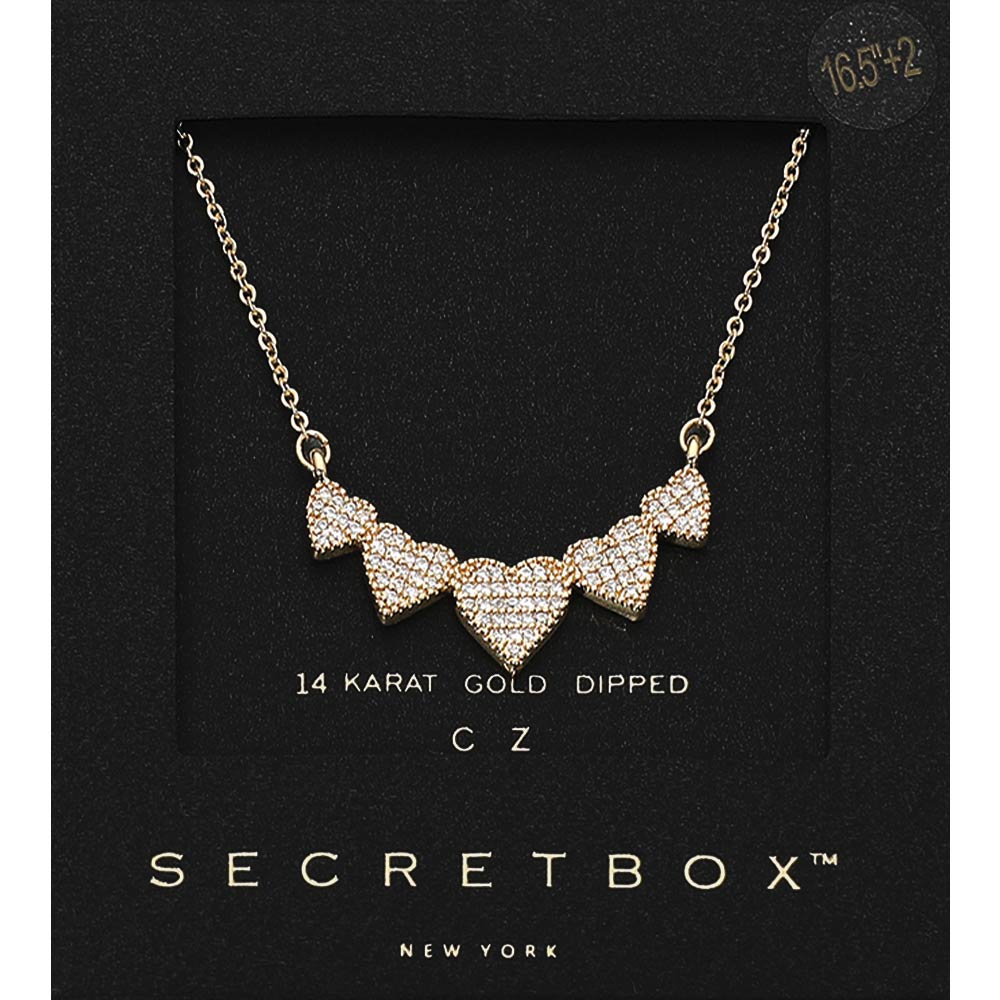 SECRET BOX_14K Gold Dipped CZ Pave Heart Link Pendant Necklace