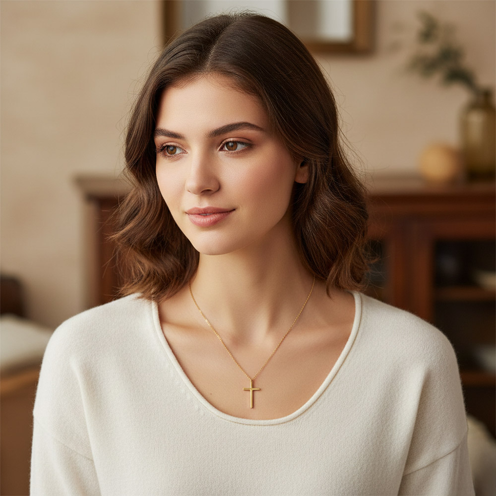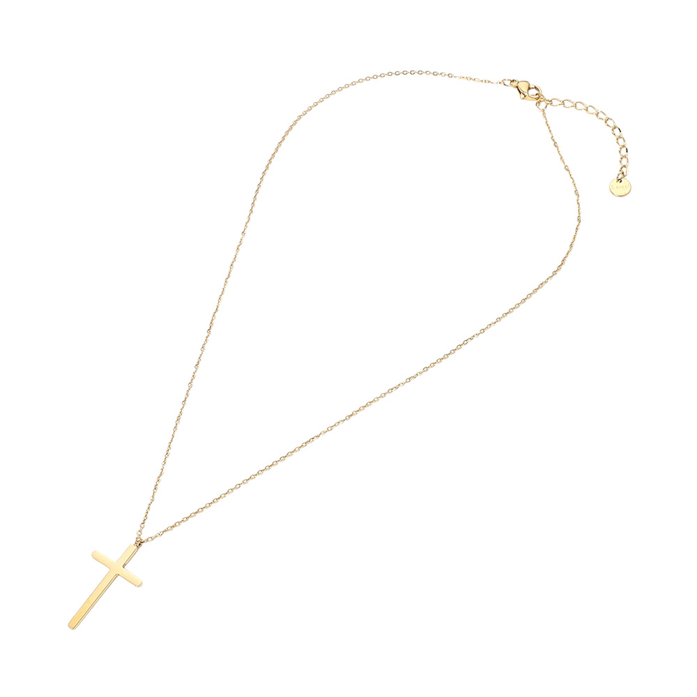 Details • Necklace Size : 15.5" + 2" L • Pendant Size : 0.6" X 1" • This minimal cross pendant chain necklace features a sleek, timeless silhouette designed for everyday wear or meaningful gifting. The simple cross charm hangs from a delicate chain with an adjustable fit, making it easy to layer or wear solo. A versatile accessory that adds subtle elegance and symbolic style to casual outfits, workwear, or special occasions. • Hypoallergenic • Stainless Steel