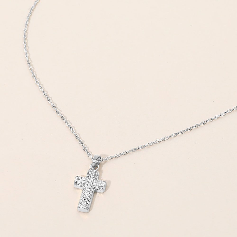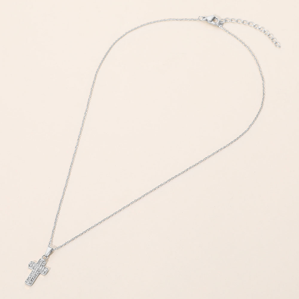 SECRET BOX_Stainless Steel Stone Paved Cross Pendant Necklace