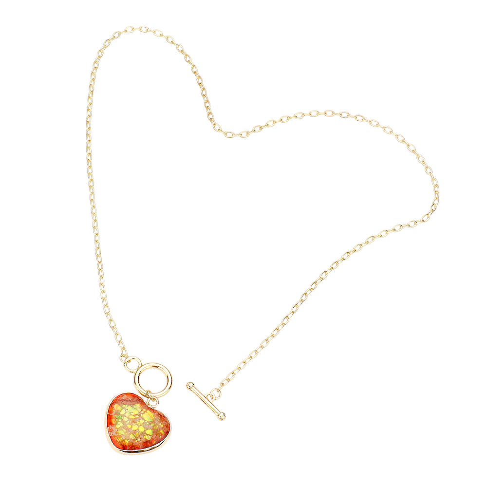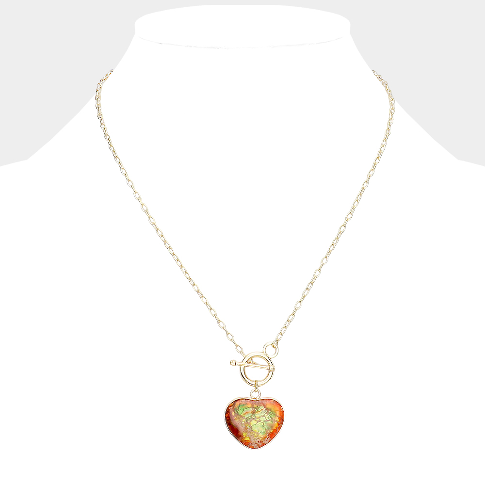 Semi Precious Heart Pendant Toggle Necklace