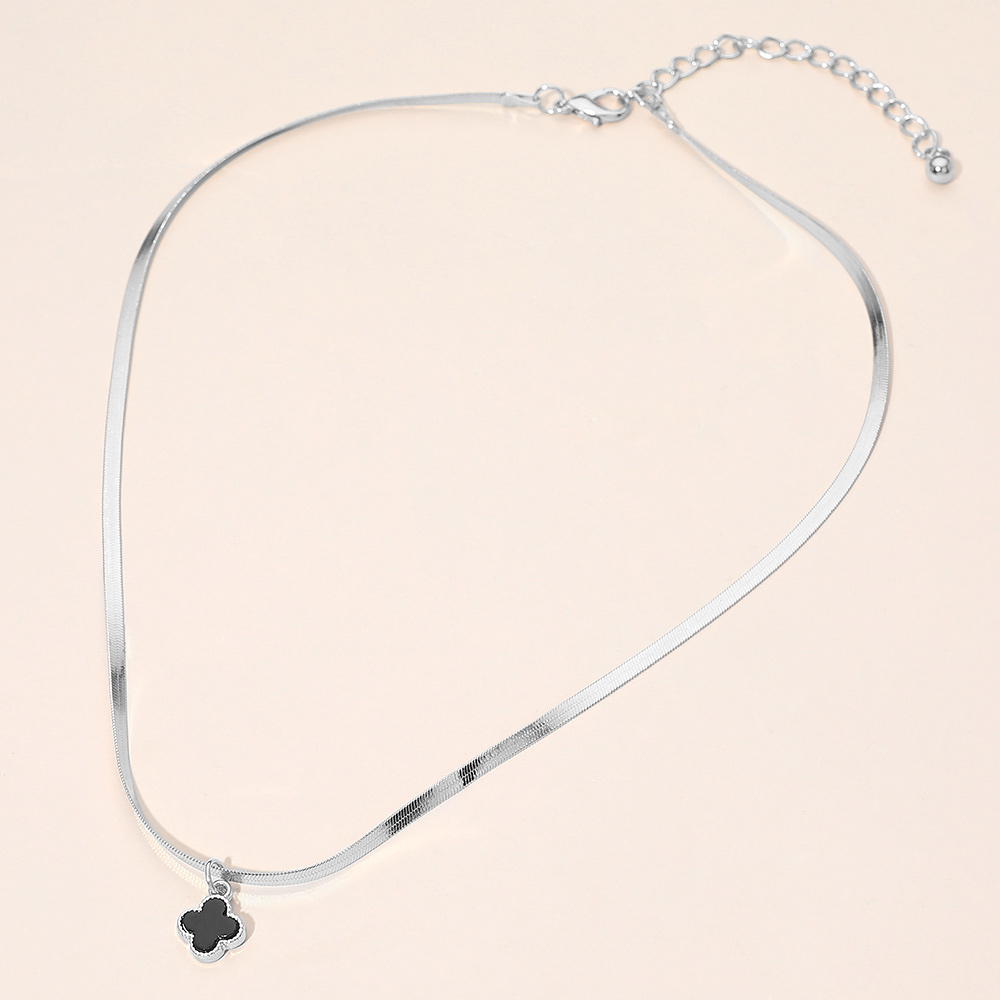 Silver Dipped Quatrefoil Pendant Herringbone Chain Necklace
