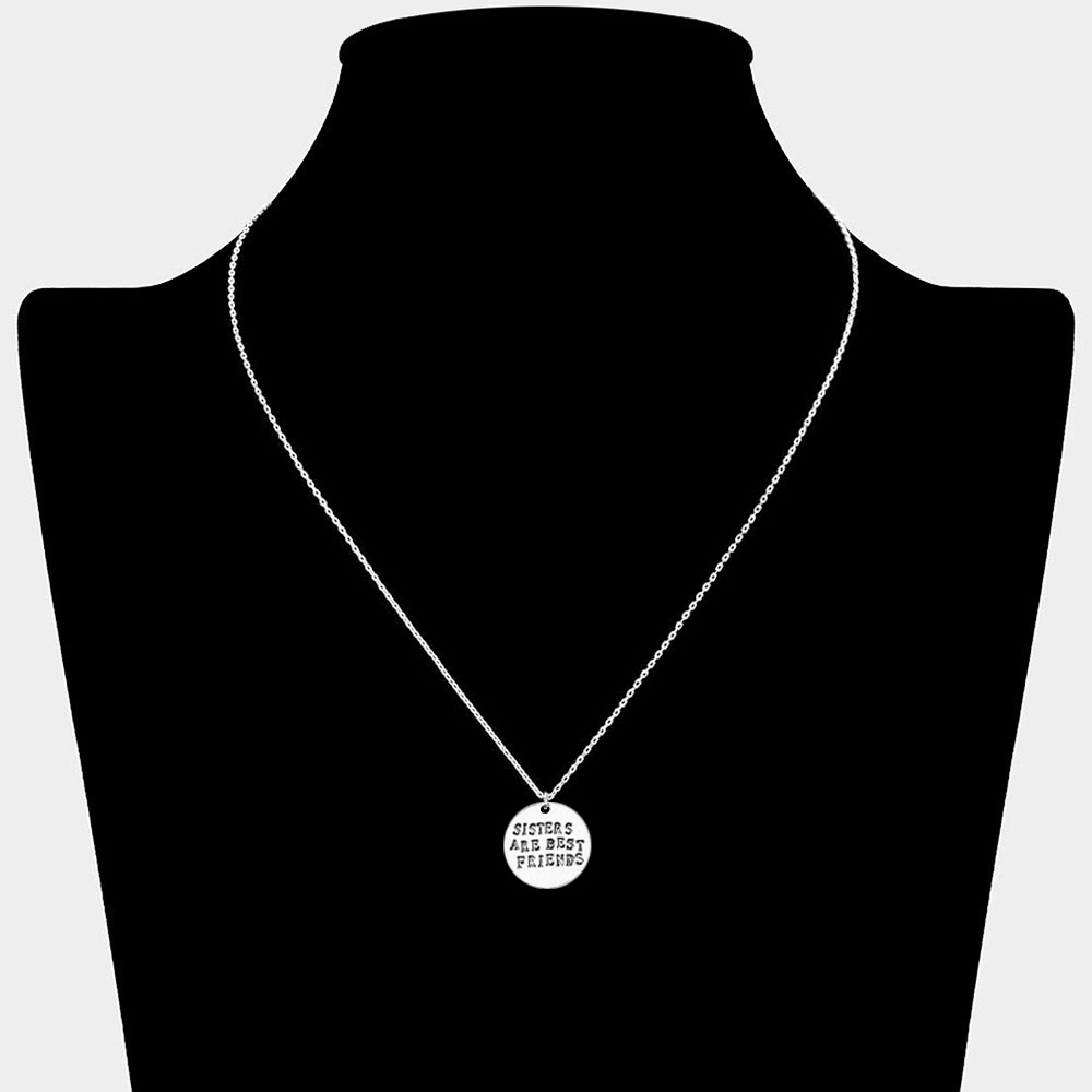 Details • Necklace Size : 16" + 3" L • Pendant Size : 0.7" X 0.7" • Pouch Bag Size : 2.75" X 3.5" • Celebrate sisterhood with this engraved pendant necklace featuring the heartfelt phrase “Sisters Are Best Friends.” A meaningful piece designed for daily wear, it makes a perfect gift to honor the bond of love, friendship, and lifelong connection between sisters. • Lead and Nickel Compliant