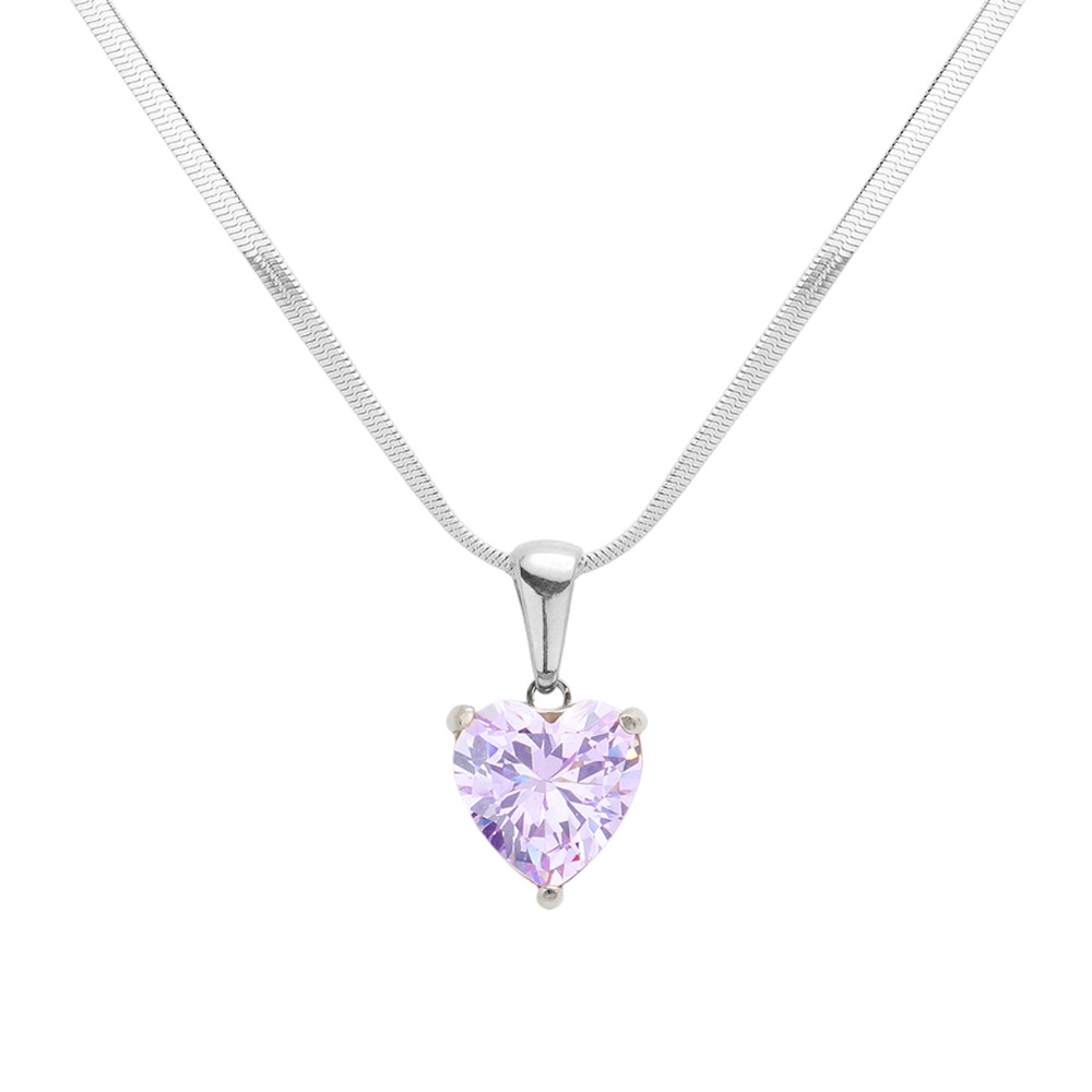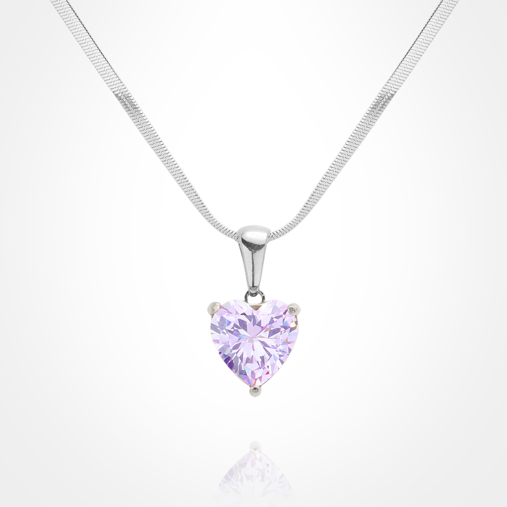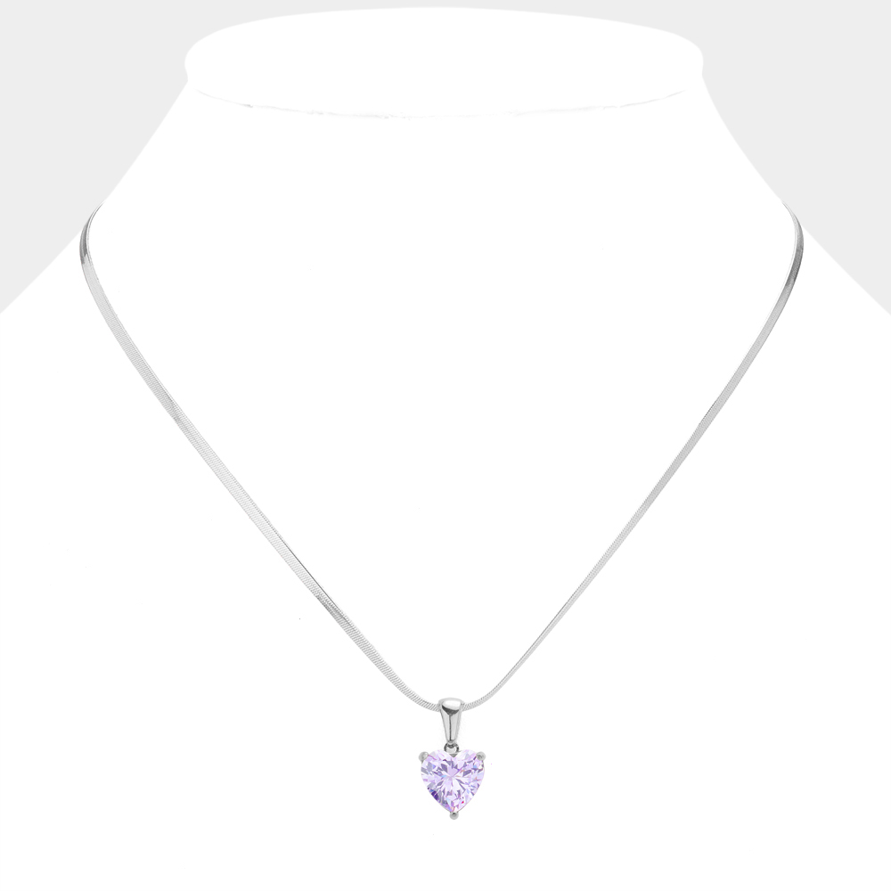 • This elegant necklace showcases a heart-cut lavender CZ pendant suspended from a sleek stainless steel chain for a refined, romantic touch. Its minimalist design makes it perfect for both everyday wear and special occasions, adding a subtle sparkle and feminine charm to any outfit effortlessly.