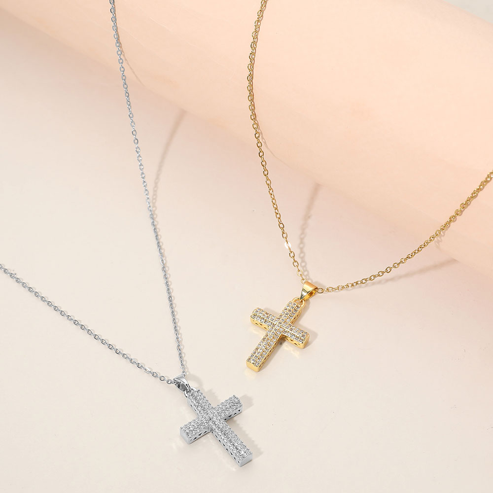 Details • Necklace Size : 15.5" + 2" L • Pendant Size : 0.7" X 1.25" • CZ Stone pave cross pendant necklace designed for everyday wear and meaningful gifting. Features a detailed cross charm with sparkling accents on a classic chain, offering timeless appeal. Ideal for boutiques, faith-inspired collections, layering styles, and customers seeking symbolic jewelry that blends elegance with versatile, daily styling. • CZ Cubic Zirconia • Stainless Steel