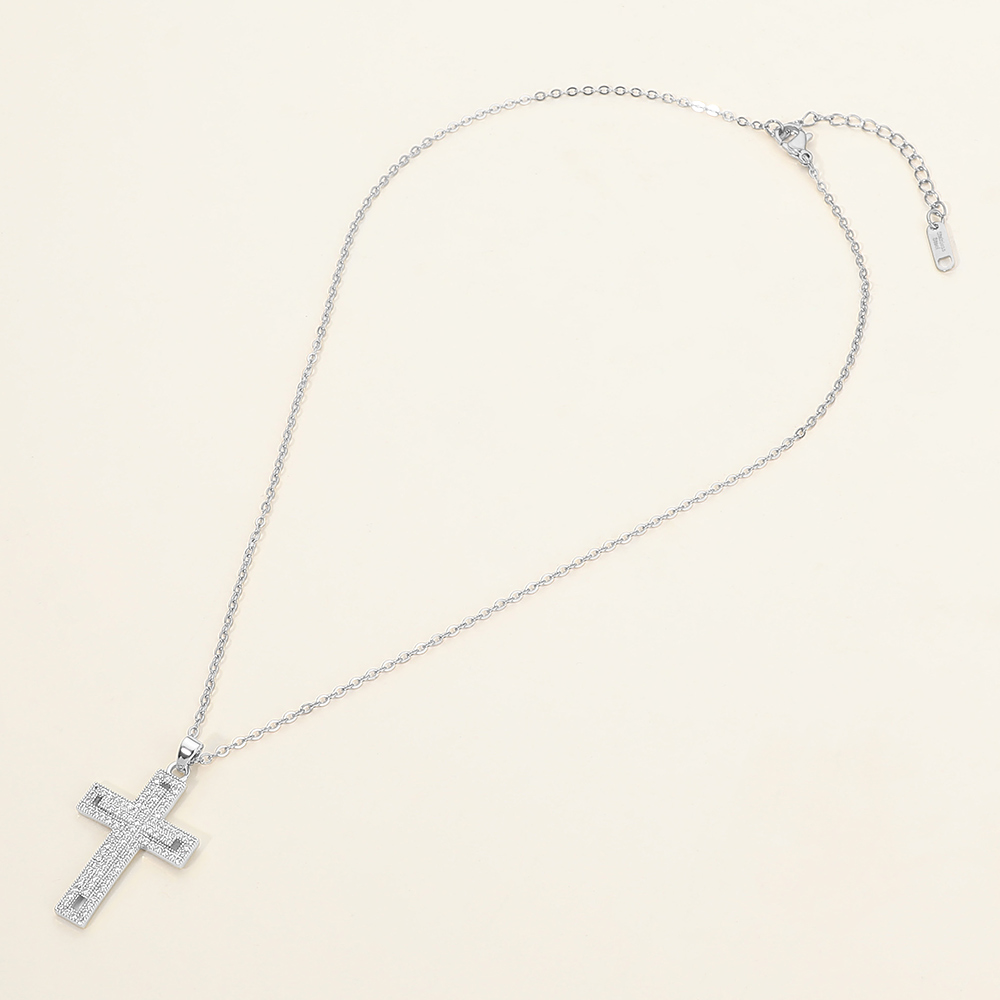 Details • Necklace Size : 15.5" + 2" L • Pendant Size : 0.75" X 1.3" • Elegant cross pendant necklace designed with a refined cz pave-style look that adds subtle sparkle and timeless meaning. Ideal for everyday wear, layering, or gifting, this versatile necklace suits faith-inspired collections and boutique displays while offering a balanced blend of symbolism and modern style for customers seeking meaningful yet wearable jewelry. • CZ Cubic Zirconia • Stainless Steel