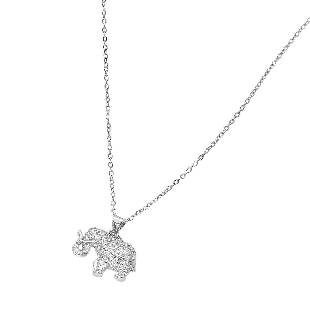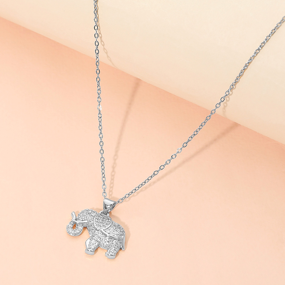 Details • Necklace Size : 15.5" + 2.25" L • Pendant Size : 1" X 0.9" • This elephant charm pendant necklace showcases a sparkling, detailed silhouette that symbolizes luck, wisdom, and protection. Designed for everyday wear or special occasions, it makes a meaningful gift and a stylish addition to boutique jewelry collections, perfect for layering or wearing alone. • CZ Cubic Zirconia • Stainless Steel