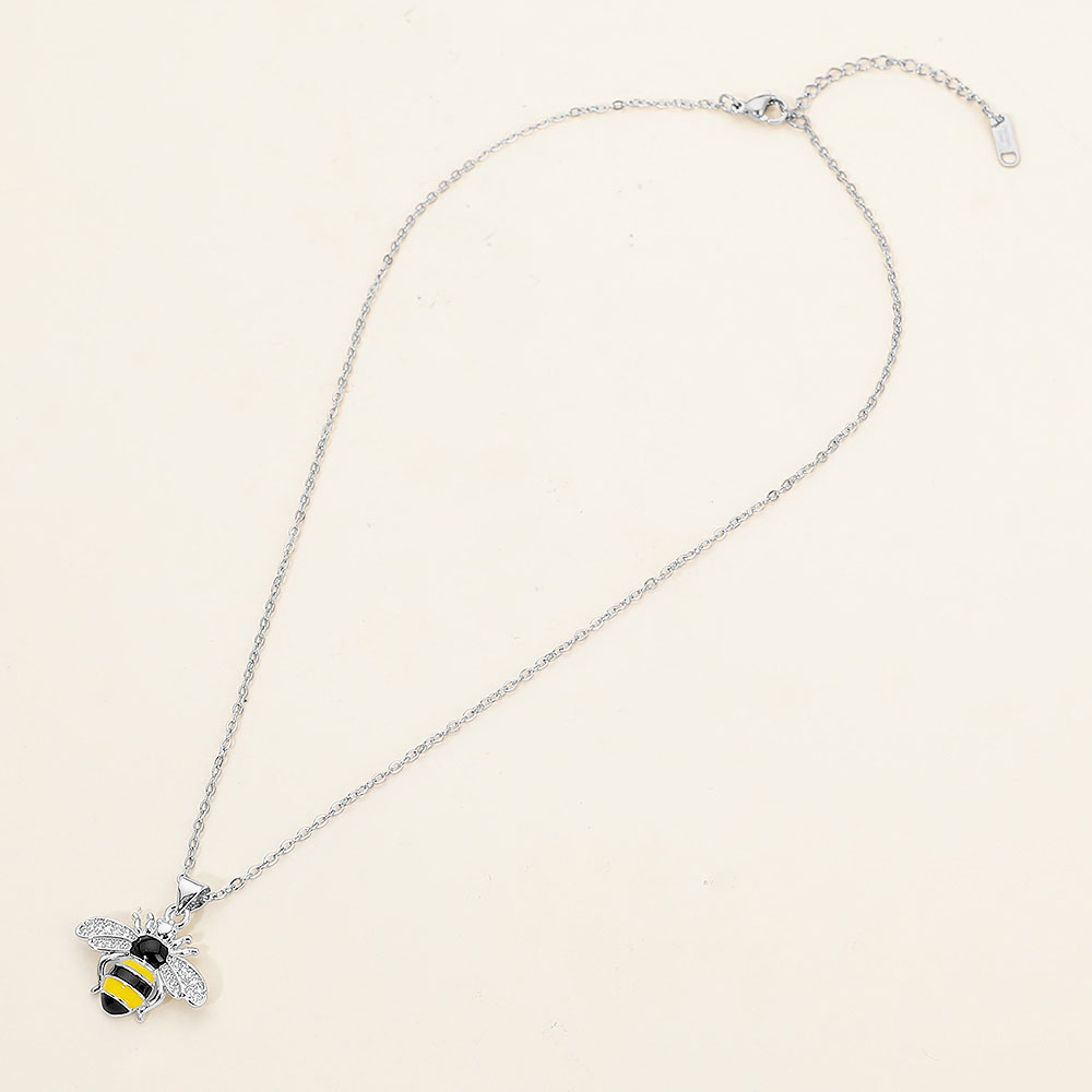 Stainless Steel CZ Stone Paved Enamel Honey Bee Pendant Necklace Stainless Steel CZ Stone Paved Enamel Honey Bee Pendant Necklace Stainless Steel CZ Stone Paved Enamel Honey Bee Pendant Necklace
