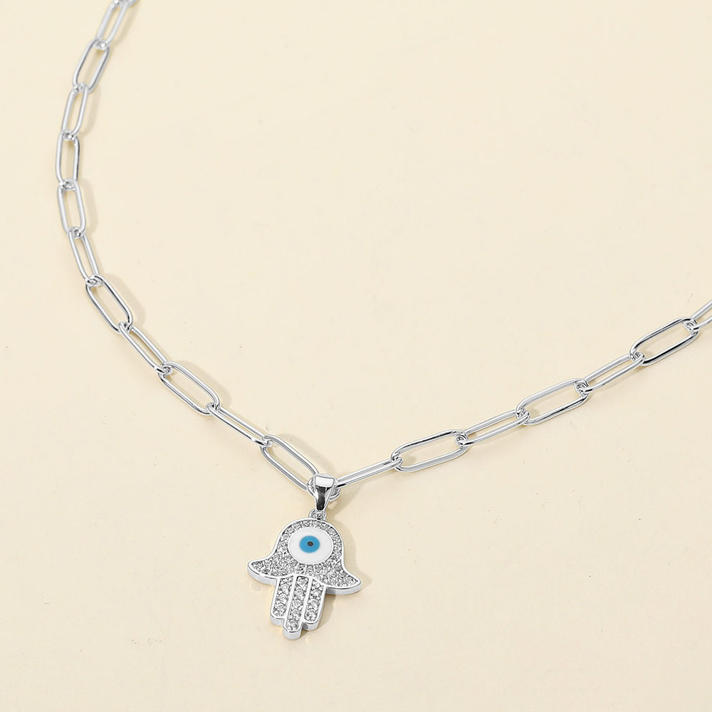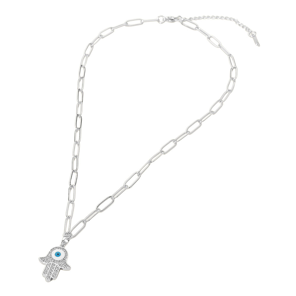Stainless Steel CZ Stone Paved Evil Eye Hamsa Hand Pendant Paperclip Chain Necklace Stainless Steel CZ Stone Paved Evil Eye Hamsa Hand Pendant Paperclip Chain Necklace Stainless Steel CZ Stone Paved Evil Eye Hamsa Hand Pendant Paperclip Chain Necklace