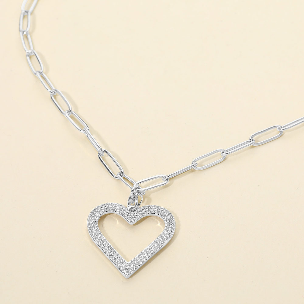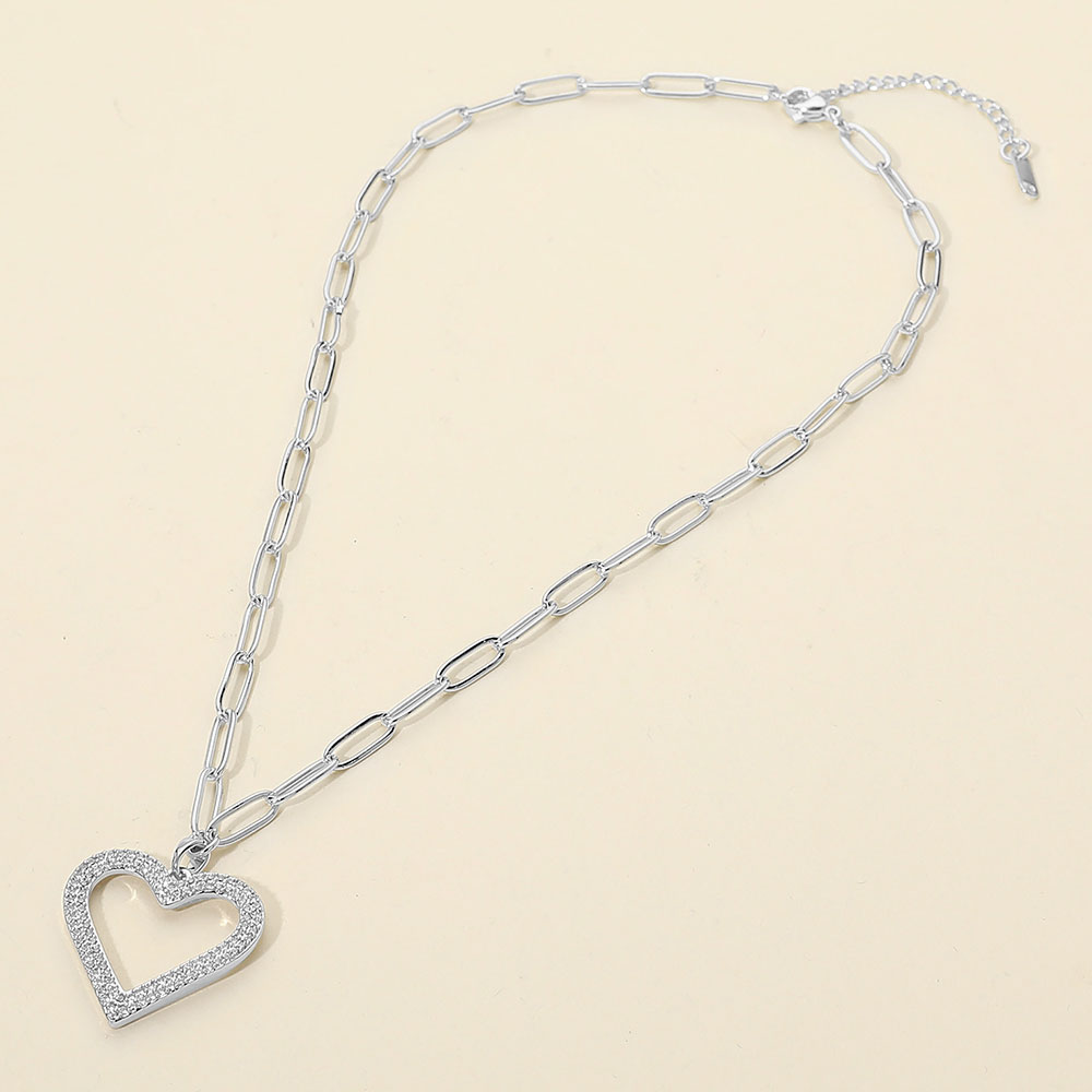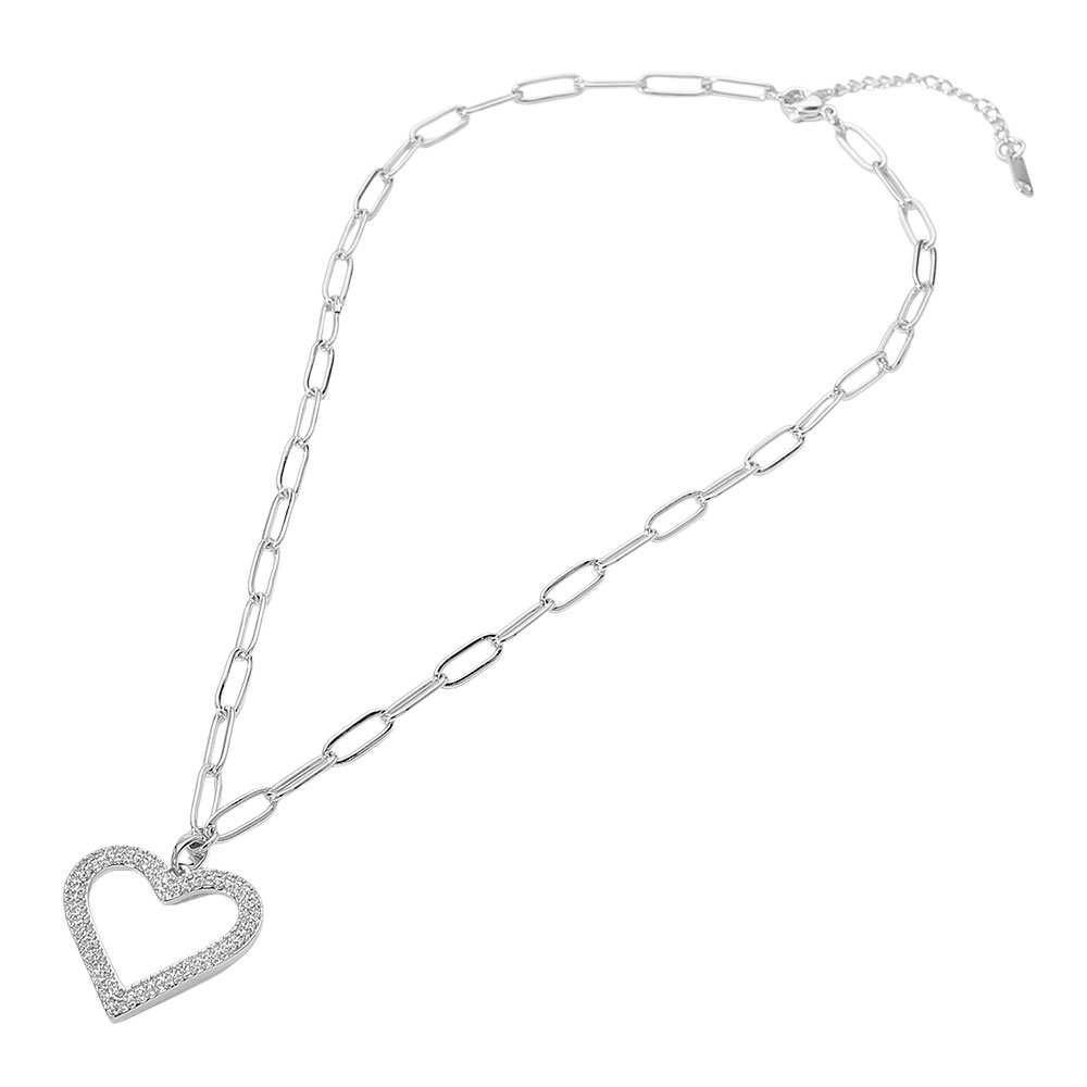 Details • Necklace Size : 16.5" + 2" L • Pendant Size : 1" X 1.25" • Stylish open heart charm necklace designed to express love, connection, and modern elegance. This necklace features a clean heart outline with subtle sparkle, making it perfect for everyday wear, layering, or meaningful gifting. A versatile jewelry essential that appeals to customers seeking romantic, symbolic accessories with timeless style. • CZ Cubic Zirconia • Stainless Steel