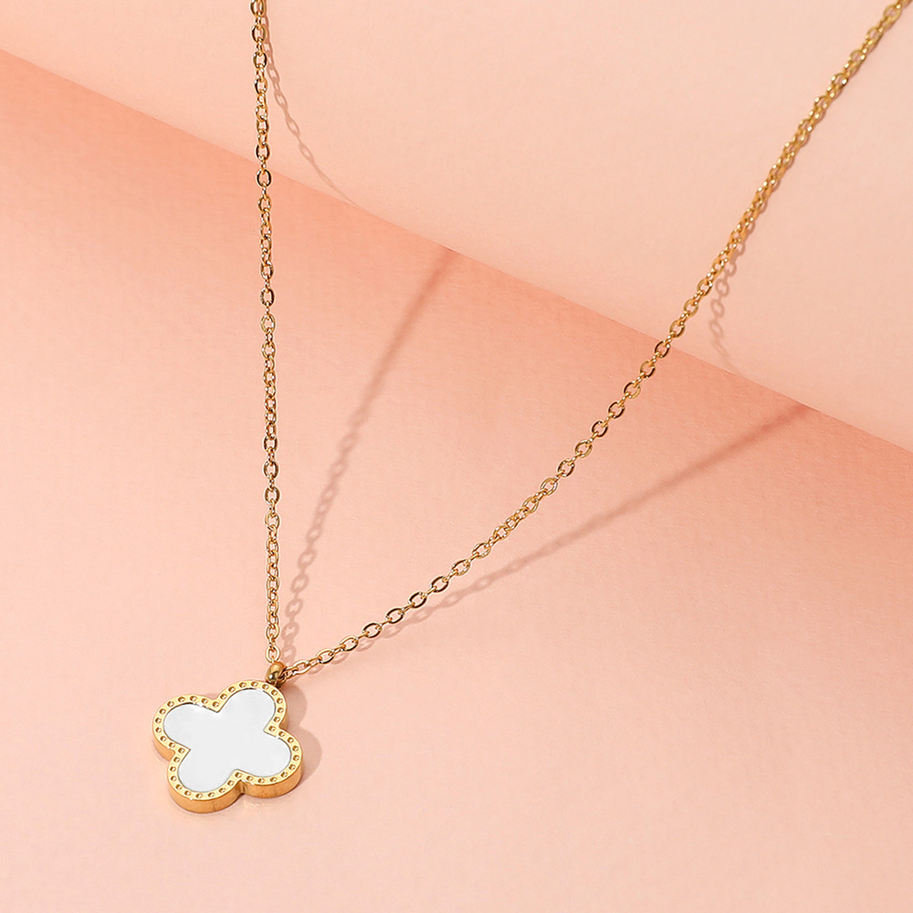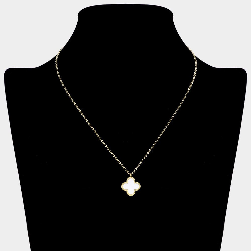 Details • Necklace Size : 16" + 1.5" L • Pendant Size : 0.6" X 0.6" • Elegant quatrefoil pendant necklace featuring a sleek chain and refined charm. A versatile accessory that adds timeless style to any outfit, from casual looks to formal occasions. Perfect as a meaningful gift or a personal staple piece, designed to bring a touch of elegance to your jewelry collection. • Stainless Steel