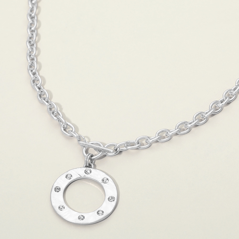 • Modern circle charm chain necklace featuring a sleek open ring pendant accented with subtle sparkle details. Designed for everyday wear and effortless layering, this versatile necklace adds a clean, contemporary touch to casual looks, office outfits, and trend-driven jewelry collections while remaining timeless and easy to style.
