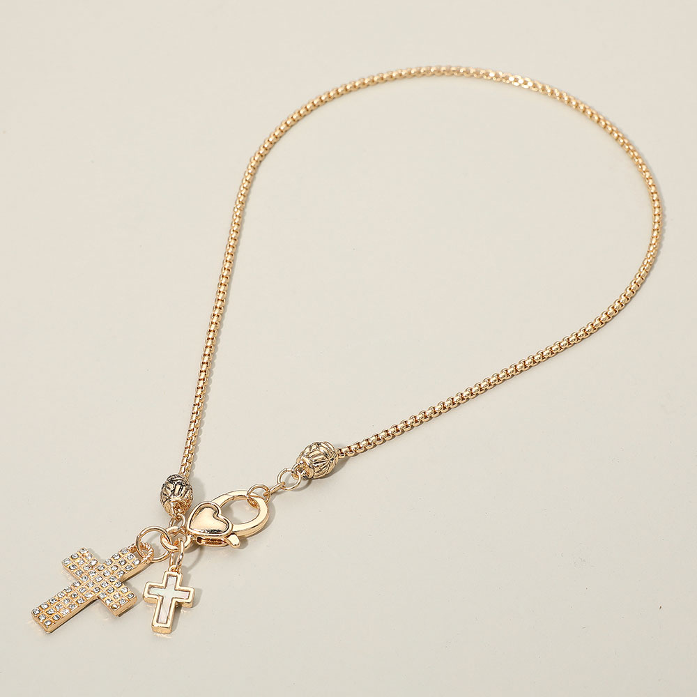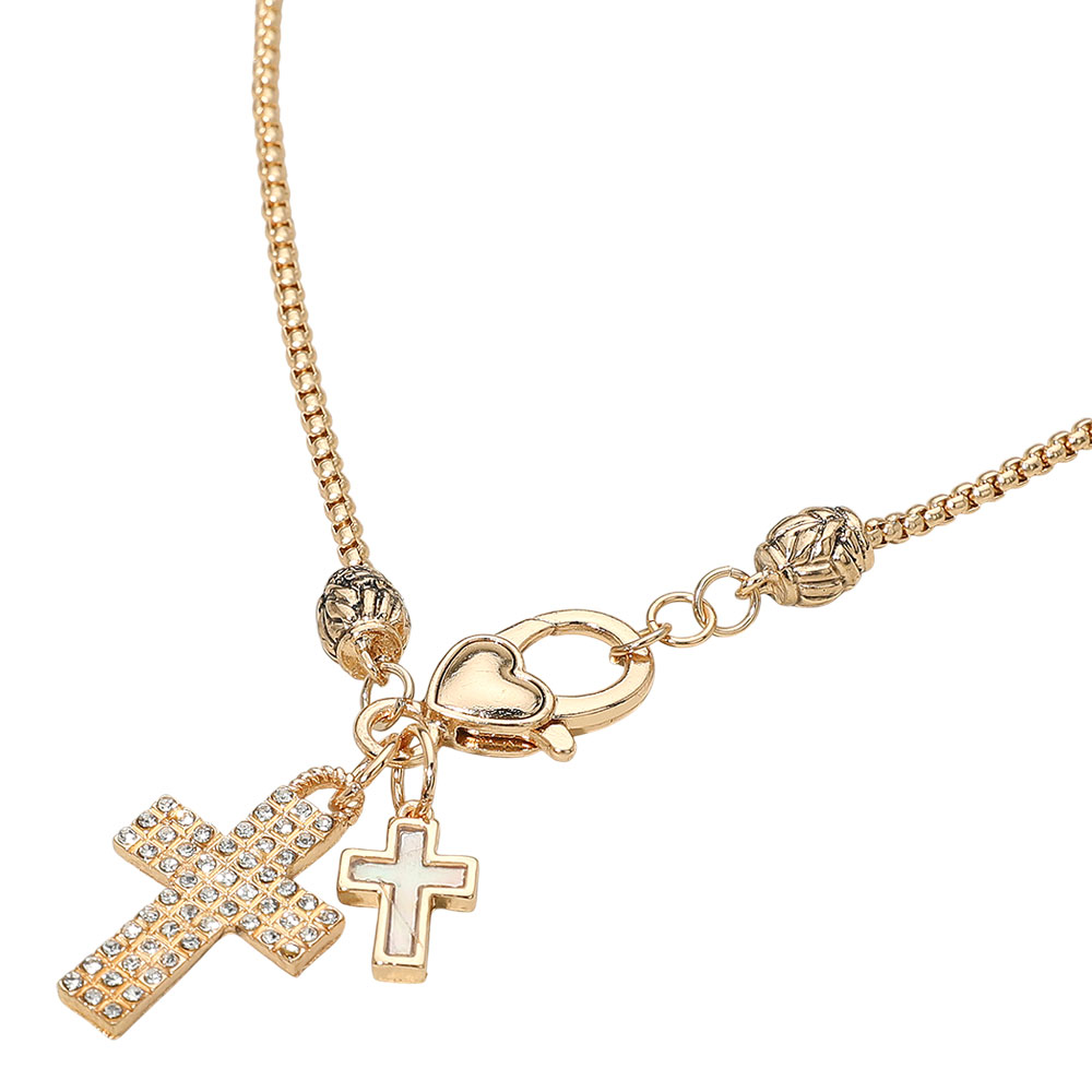 Details • Necklace Size : 16" + 0.75" L • Pendant Size : 1.5" L • Elevate your look with this multi-charm necklace featuring a crystal-studded cross and heart accents for a chic, symbolic design. Perfect for layering or wearing solo, its timeless style adds elegance and meaningful detail to any outfit, from casual to dressy. • Lead and Nickel Compliant