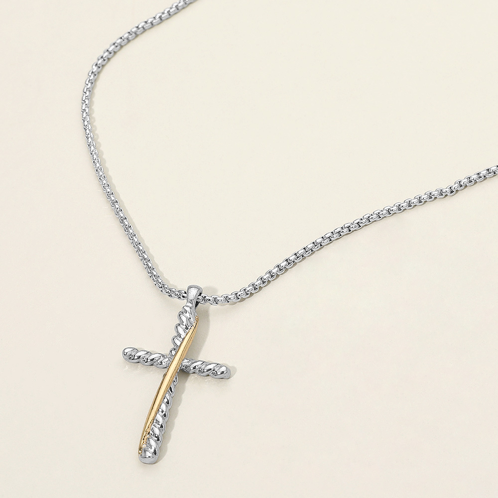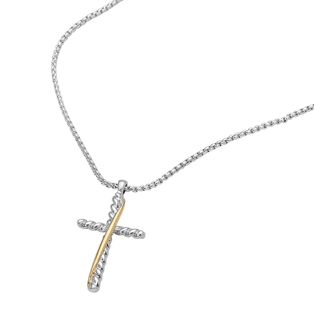 Details • Necklace Size : 17.75" + 3.25" L • Pendant Size : 0.8" X 1.5" • A sleek chain necklace featuring a sculpted cross pendant with a modern textured design. Ideal for everyday wear or meaningful gifting, offering a clean, versatile look that layers beautifully or stands out worn solo. • Lead and Nickel Compliant