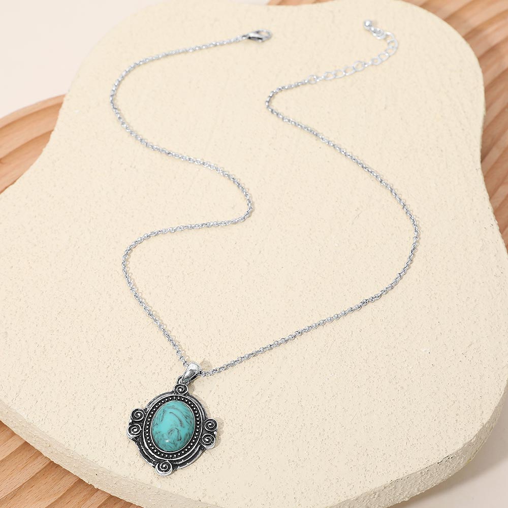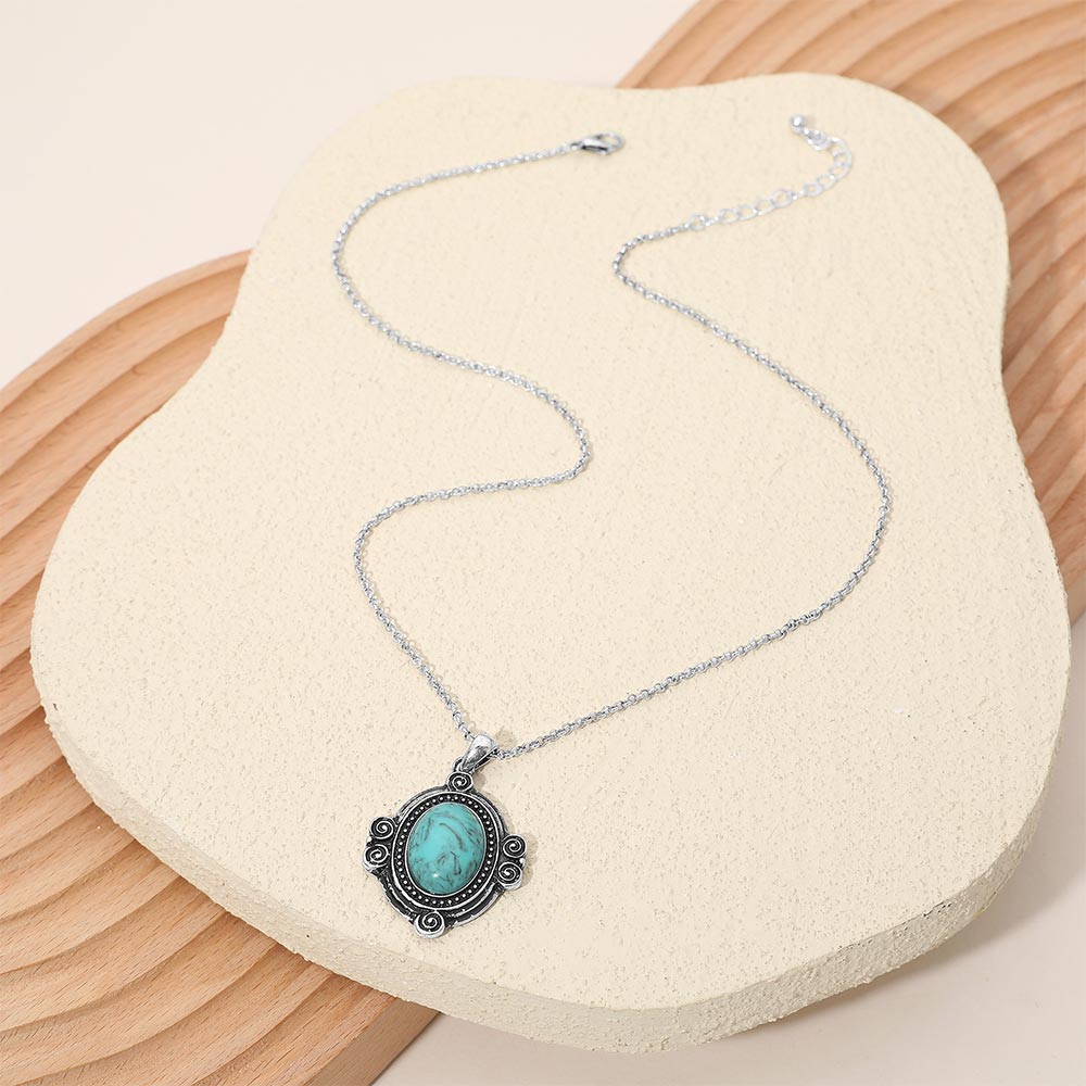 Details • Necklace Size : 19" + 2" L • Pendant Size : 1.2" X 1.75" • Add a touch of classic charm with this Vintage Oval Stone Pendant Necklace. Featuring an ornate antique-style frame and a striking central stone, it offers timeless sophistication and bohemian appeal. Perfect for pairing with everyday outfits or enhancing special occasion looks effortlessly. • Lead and Nickel Compliant