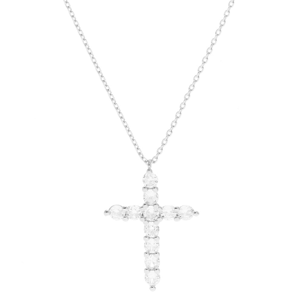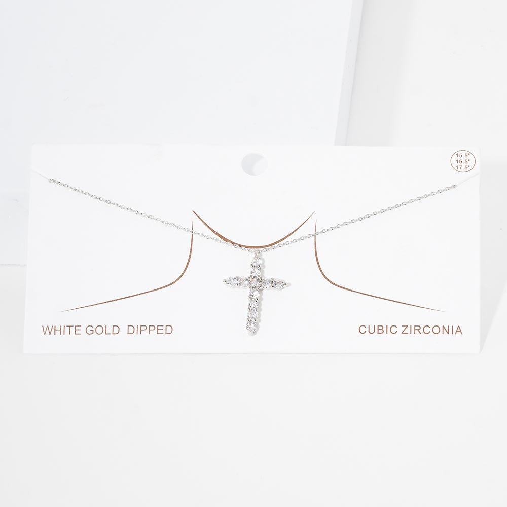 14K Gold Dipped CZ Stone Bezel Cross Pendant Necklace