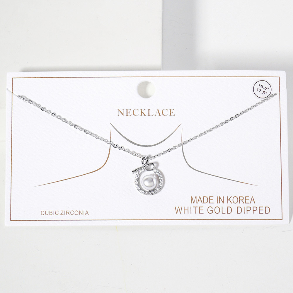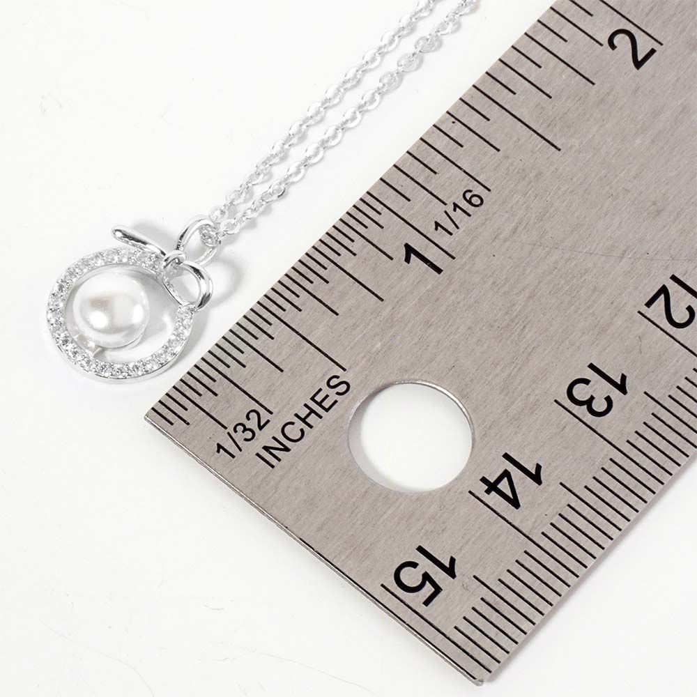 Gold Dipped CZ Pave Halo Pearl Charm Pendant Necklace