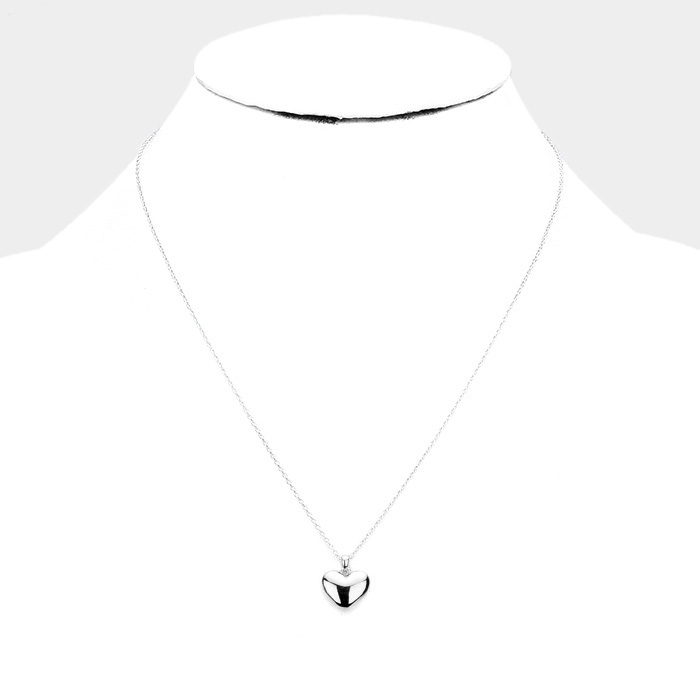 White Gold Dipped Metal Heart Pendant Necklace