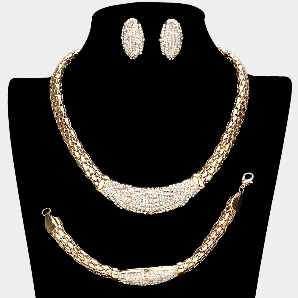 3PCS - Rhinestone Embellished Necklace Jewelry Set
