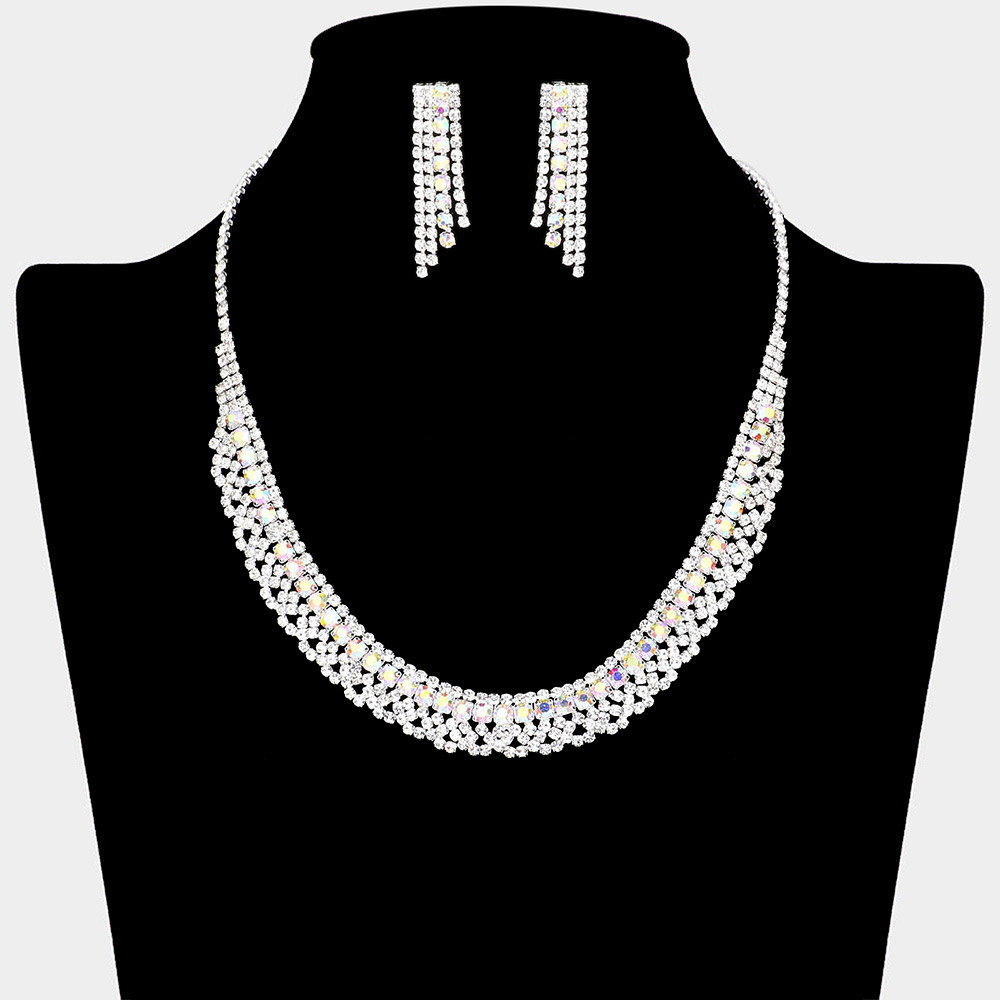Details • Necklace Size : 15" L + 4" L • Decor Size : 0.5" L • Earring Size : 1.5" L • Dazzle with timeless glamour in this Layered Sparkling Crystal Necklace and Earring Set. Designed with cascading rows of brilliant stones, it adds a luxurious radiance to any outfit—ideal for weddings, evening galas, and festive celebrations that call for effortless sophistication.
