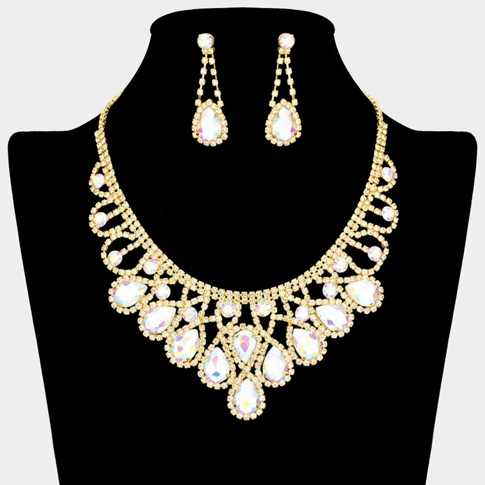 Crystal Teardrop Rhinestone Pave Evening Necklace