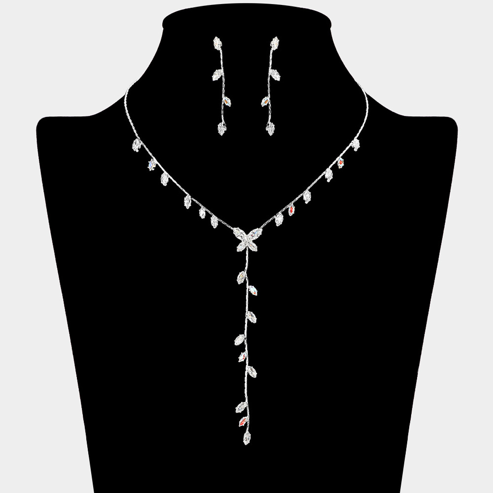 • Elevate your look with this graceful cz marquise stone cluster Leaf Vine Necklace and Earring Set. Featuring a cascading vine design adorned with delicate leaf accents, this elegant ensemble captures natural beauty and timeless sophistication—perfect for weddings, galas, or refined evening occasions.