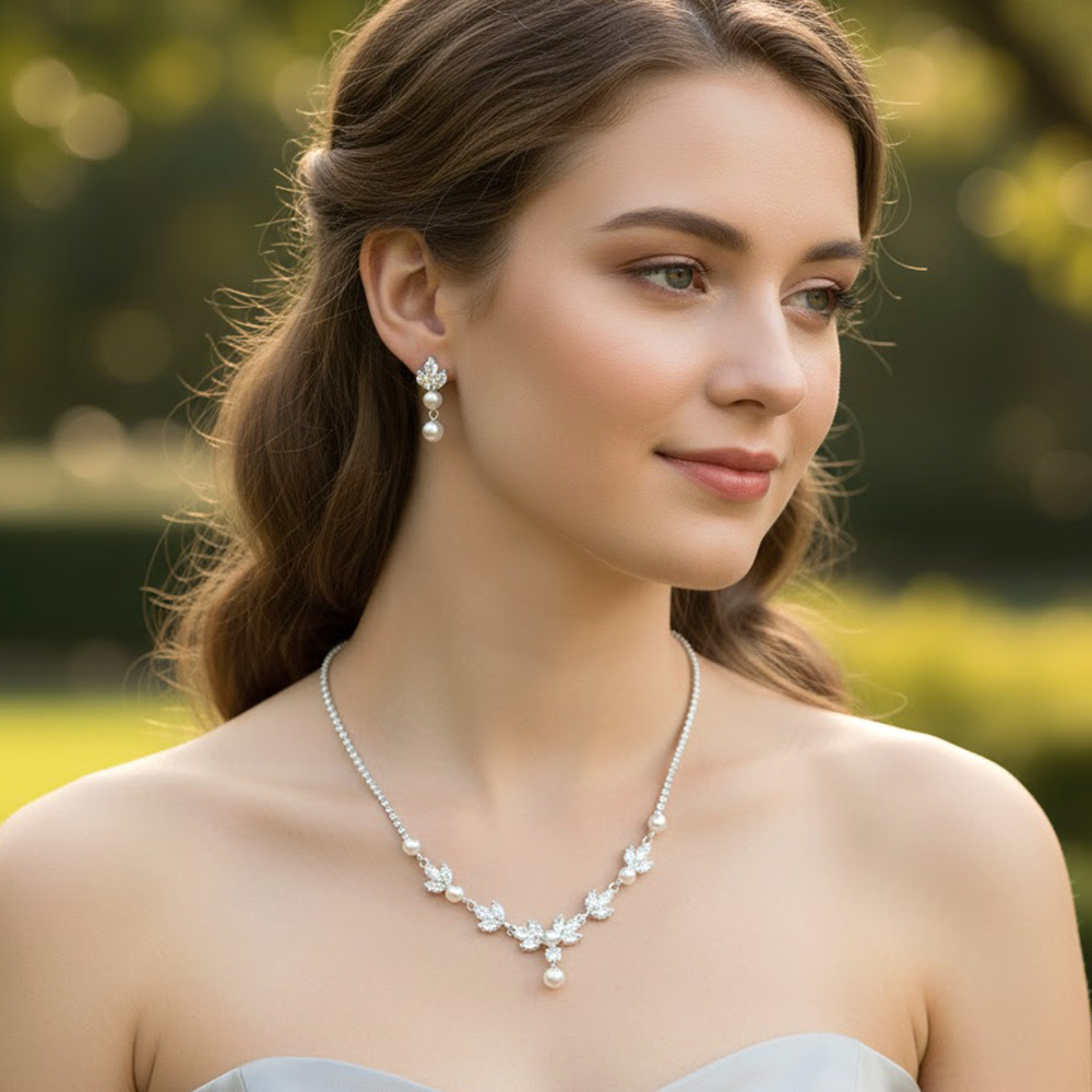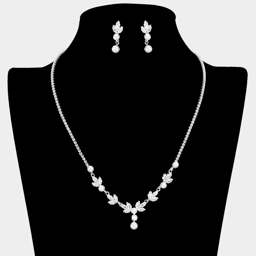 • Add refined charm to any formal look with this delicate jewelry set featuring a graceful arrangement of sparkling accents and classic pearl drops. The matching earrings and necklace bring a polished finish to bridal styles, evening wear, and special celebrations, creating a timeless, graceful impression.