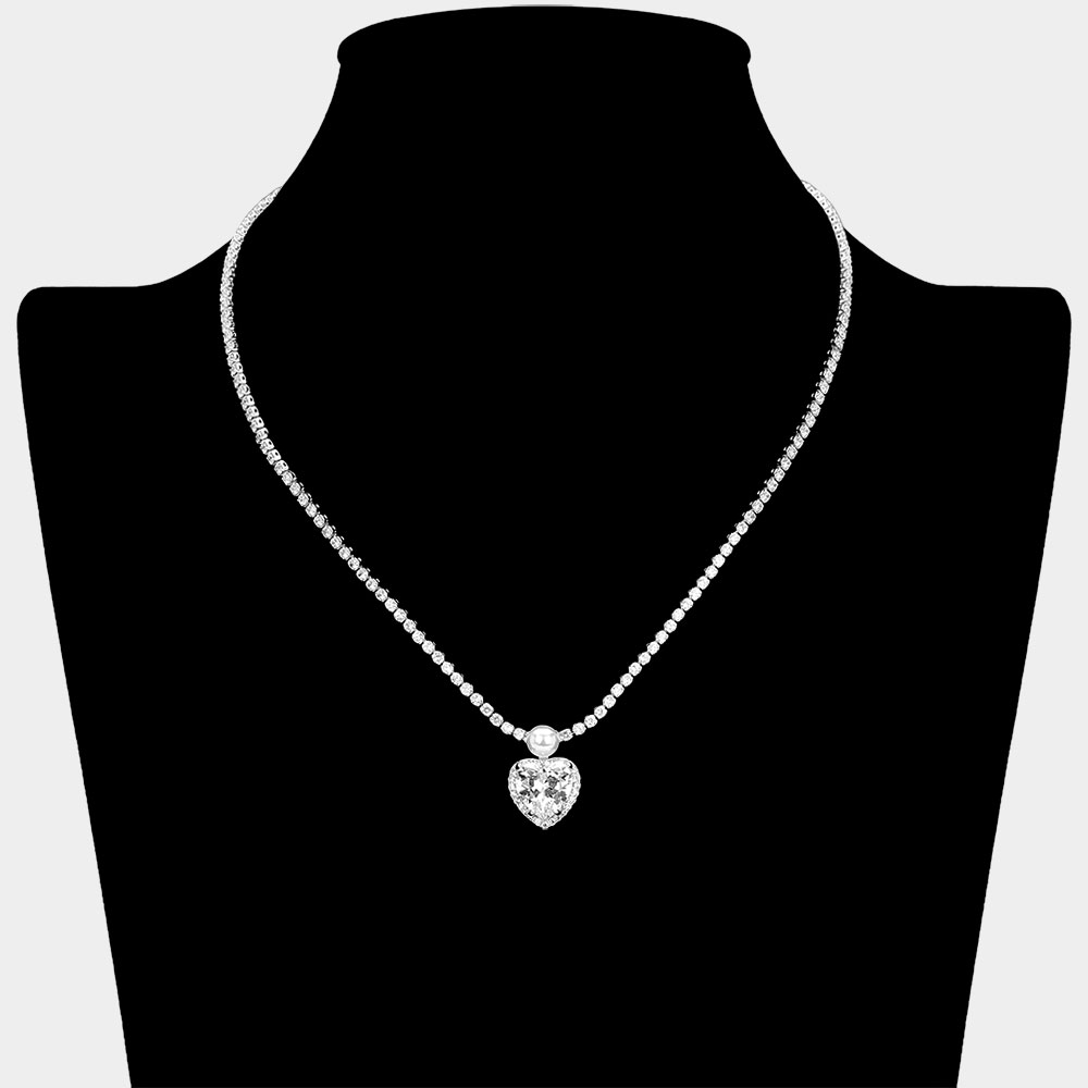 Details • Necklace Size : 16" + 3" L • Decor Size : 0.5" X 0.75" • This elegant heart drop necklace features a sleek, balanced design with a refined center accent that adds subtle sparkle to any look. Ideal for formal occasions, romantic styling, bridal wear, or boutique jewelry collections, it offers timeless appeal with versatile, polished elegance. • Brass • CZ Cubic Zirconia