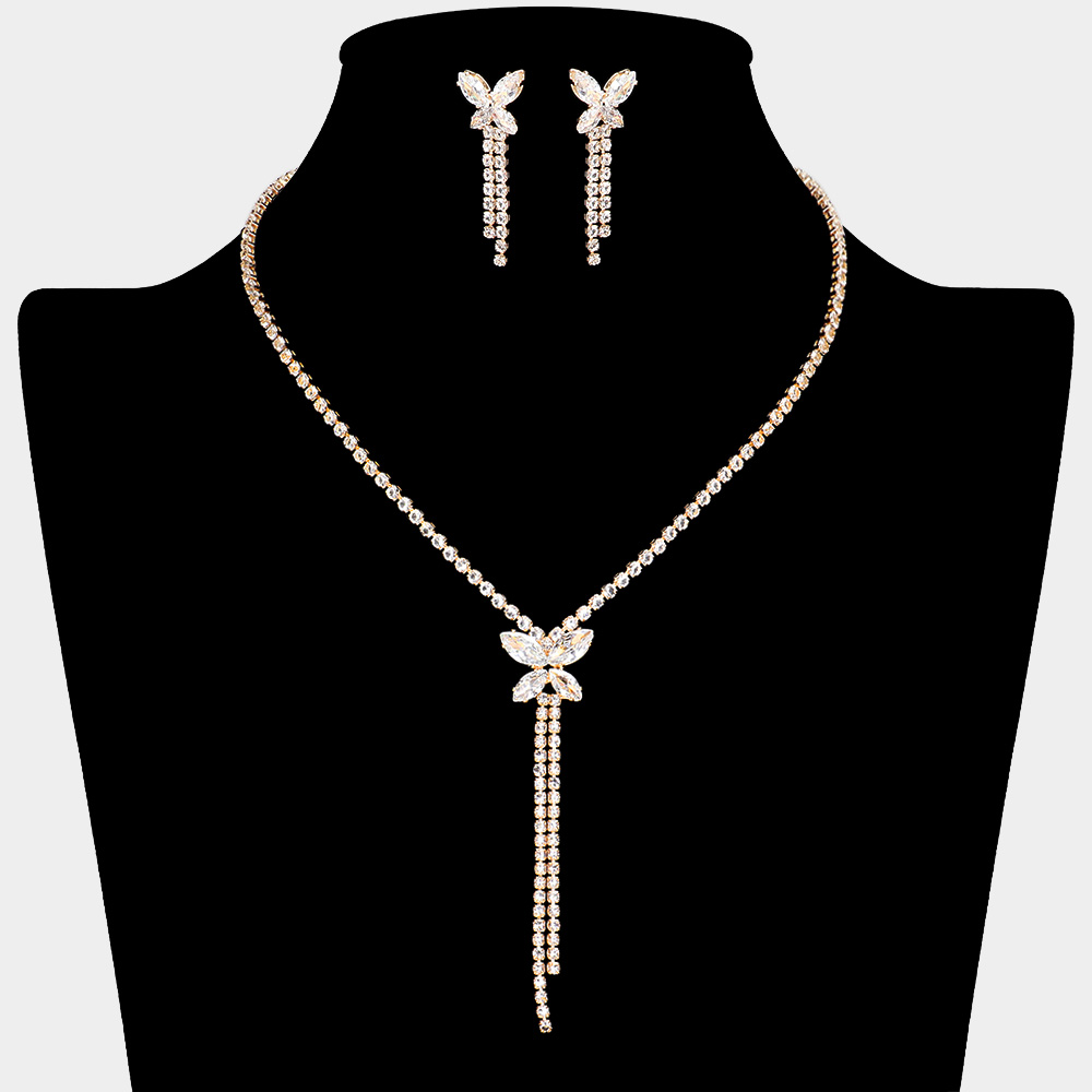 Marquise CZ Stone Accented Butterfly Pointed Rhinestone Paved Necklace