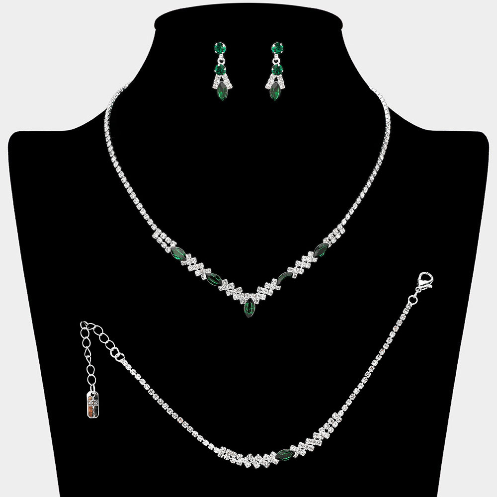 Marquise Stone Cluster Accent Rhinestone Paved Jewelry Set