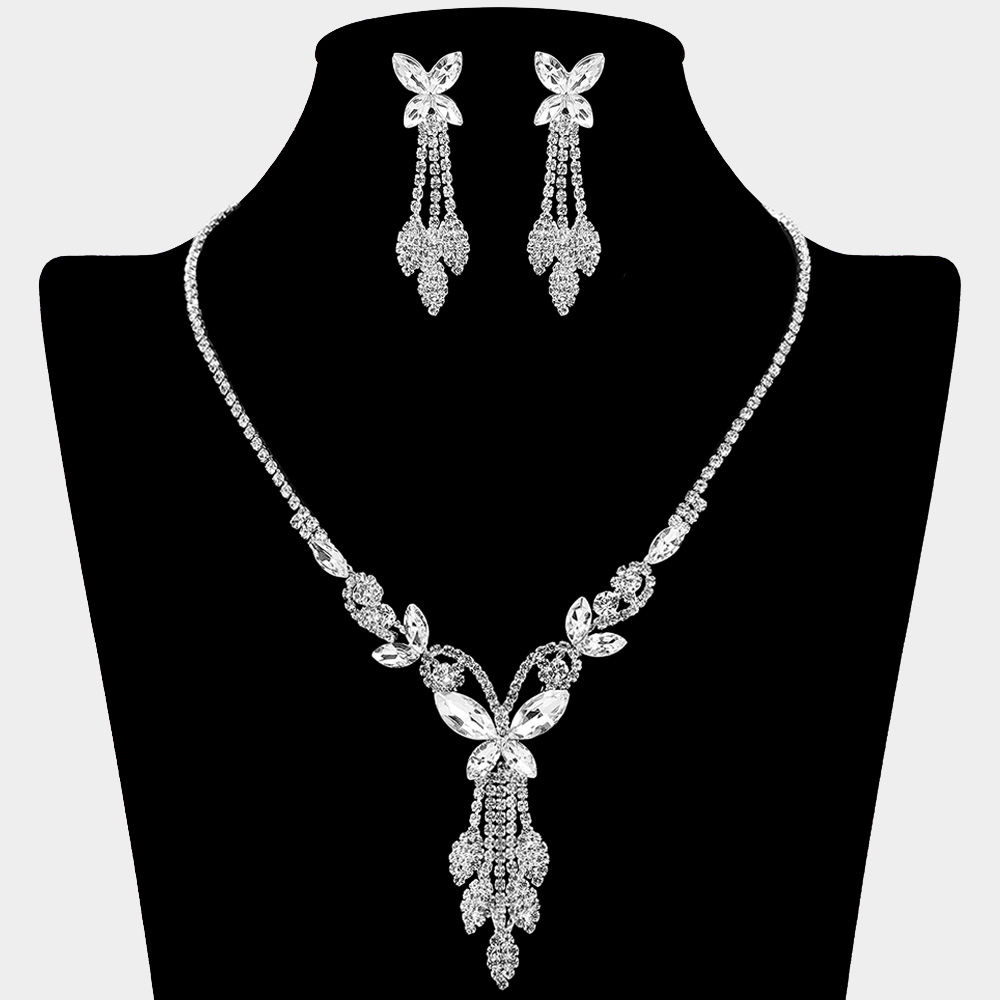 • Add charm and elegance with this butterfly drop necklace and earring set. Featuring sparkling stones and a refined design, it's perfect for weddings, evening events, and formal occasions, making it a timeless addition to any jewelry collection.