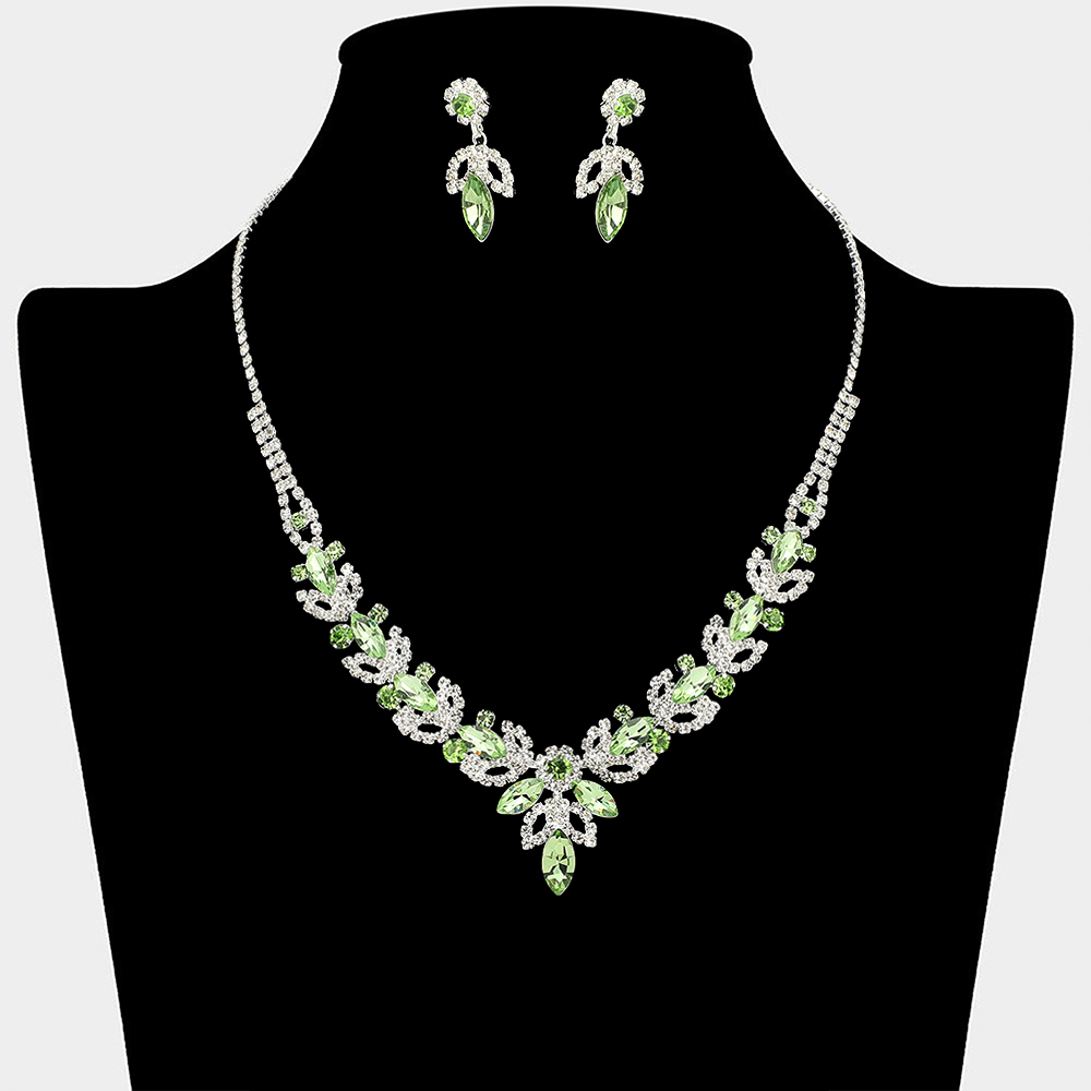 • This statement necklace and matching earring set showcases cascading leaf and drop details in a symmetrical design that frames the neckline beautifully. Ideal for weddings, formal events, evening wear, and special occasions, it delivers refined sparkle and a polished finish to elevated looks.