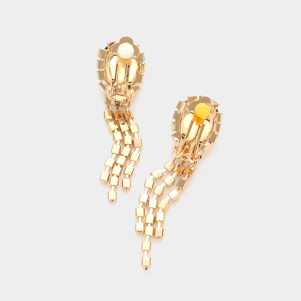 Oval Stone Accented V Shaped Rhinestone Necklace Clip on Earring Set