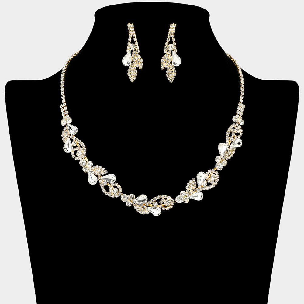 Details • Necklace Size : 16" + 4" L • Decor Size : 0.6" L • Earrings Size : 1.5" L • Elevate your elegance with this leaf cluster necklace and earring set. Designed with intricate details and shimmering stones, it offers a graceful blend of sophistication and sparkle. Ideal for weddings, evening events, and celebrations, it adds a radiant finishing touch to any ensemble.
