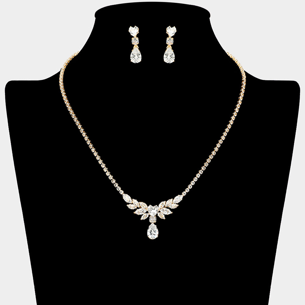 Teardrop CZ Stone Cluster Accent Marquise Stone Rhinestone Paved Necklace Teardrop CZ Stone Cluster Accent Marquise Stone Rhinestone Paved Necklace
