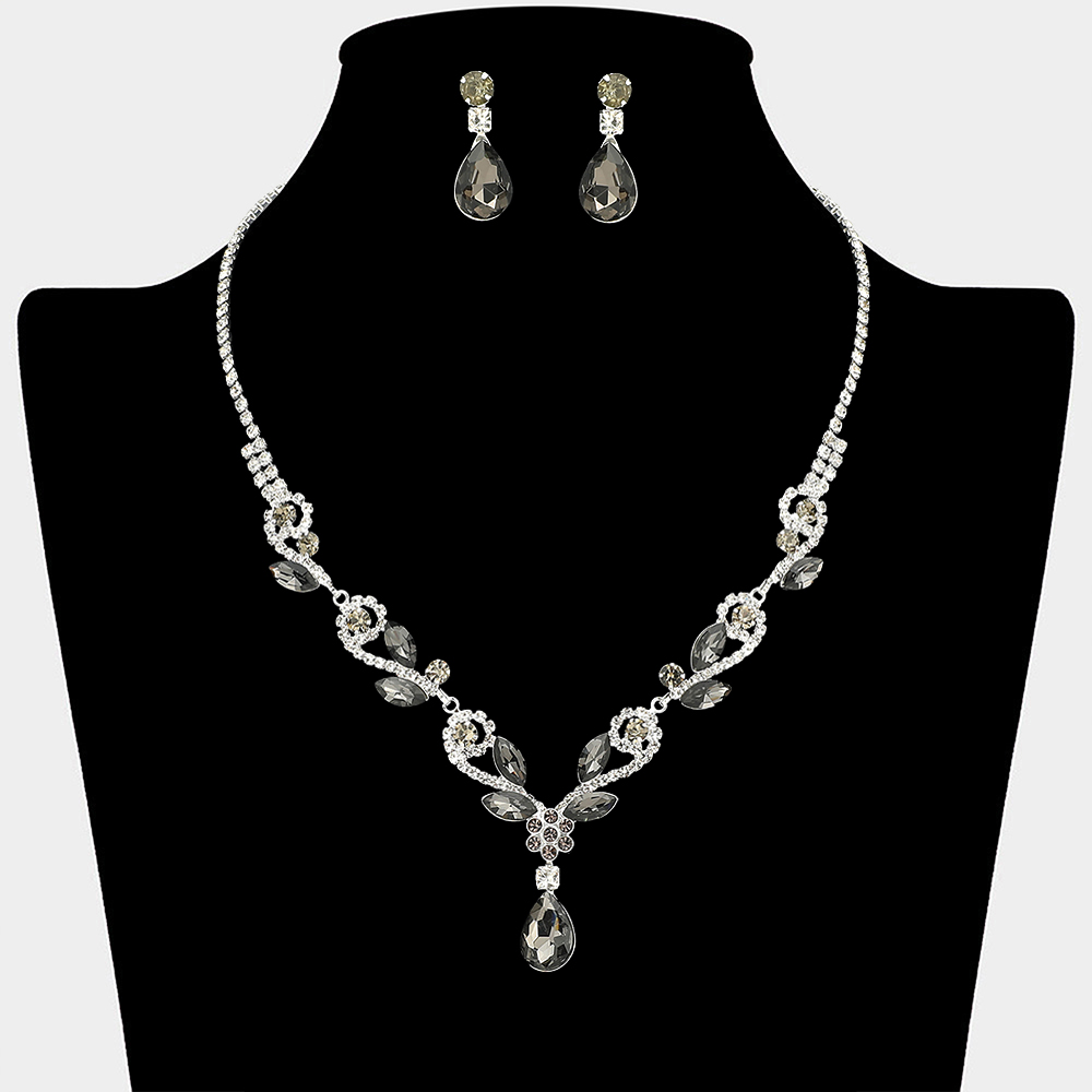 • This elegant necklace and matching earring set features a graceful teardrop design with layered crystal details that highlight the neckline beautifully. Ideal for weddings, formal events, proms, and evening occasions, it delivers timeless elegance and eye-catching sparkle for special celebrations.