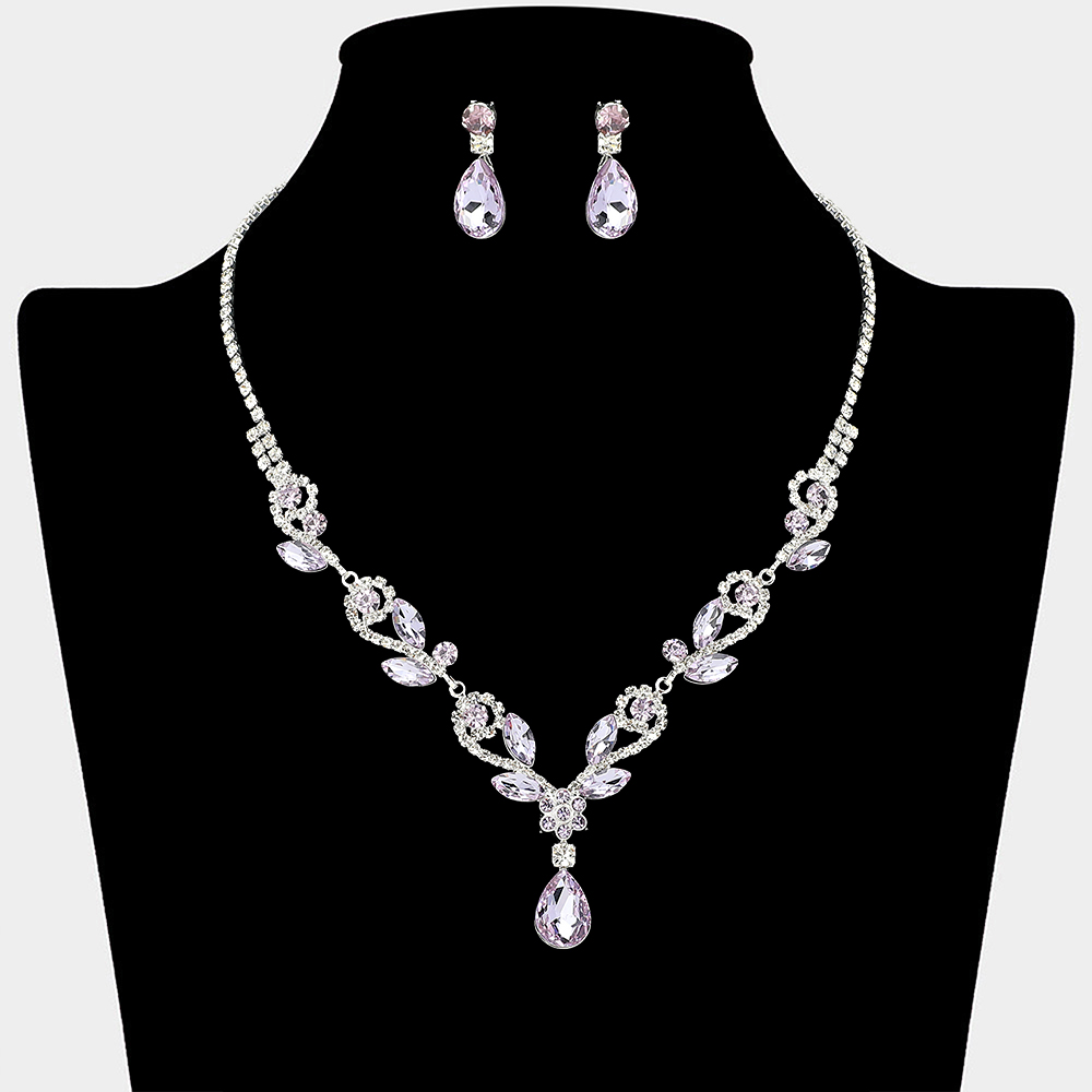 • This elegant necklace and matching earring set features a graceful teardrop design with layered crystal details that highlight the neckline beautifully. Ideal for weddings, formal events, proms, and evening occasions, it delivers timeless elegance and eye-catching sparkle for special celebrations.
